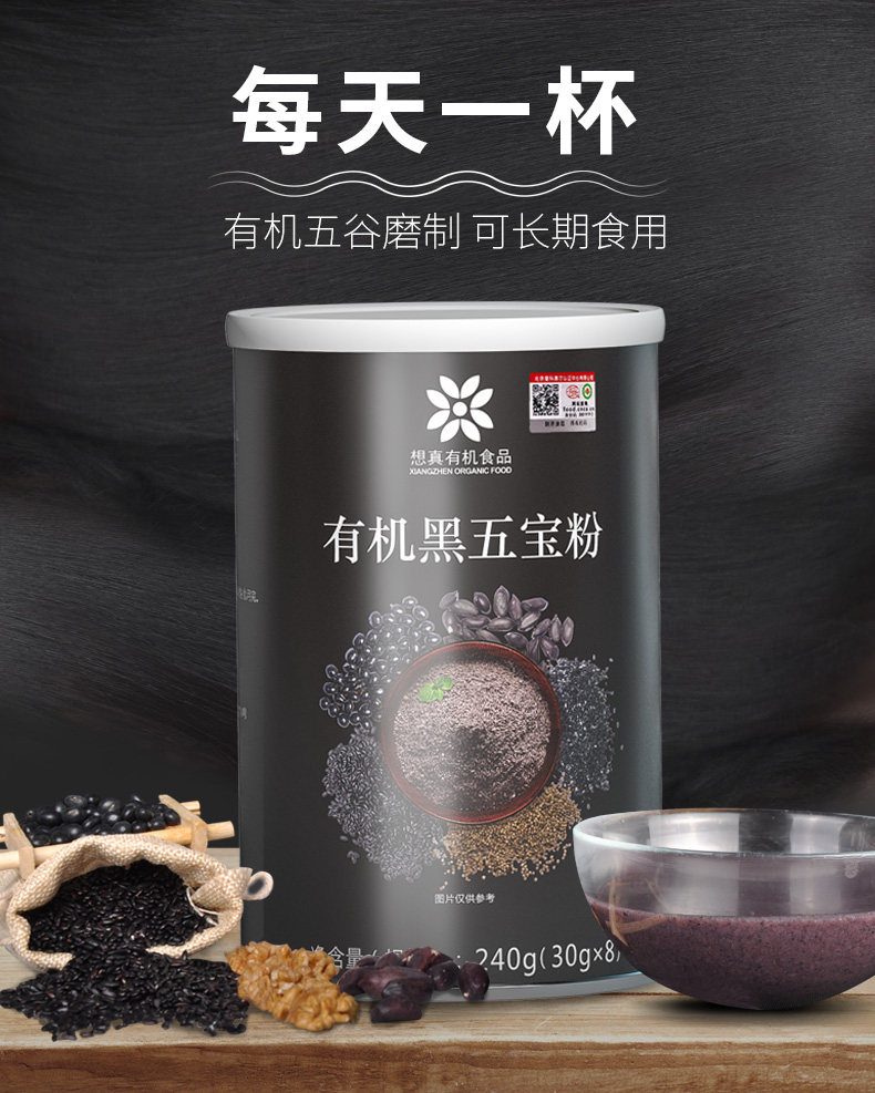 商品名称:想真有机黑小米黑大豆黑米黑芝麻黑花生红小豆白砂糖核桃仁五宝粉