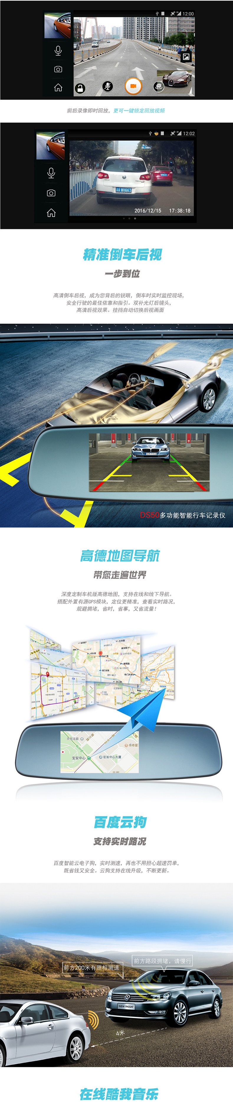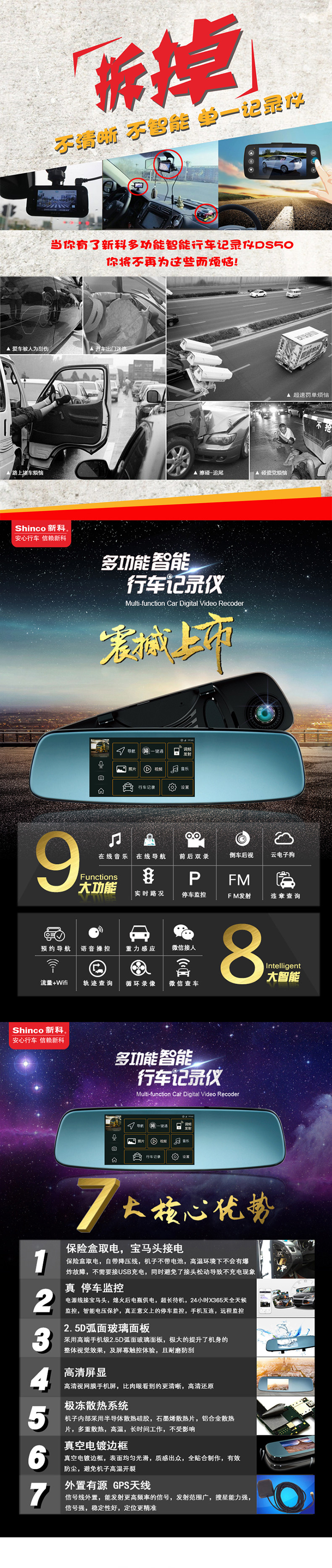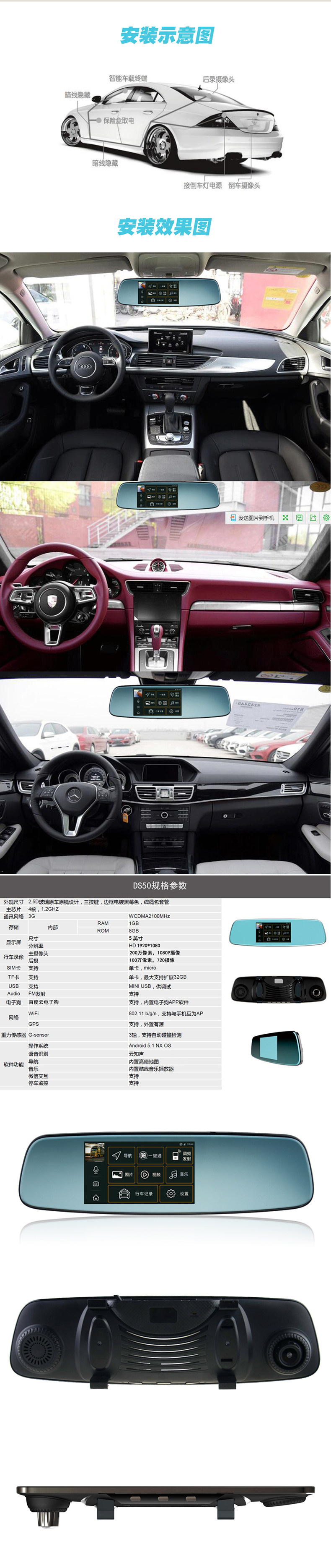 商品名称:新科DS50行车记录仪双镜头后视镜倒车影像导航带电子狗一体机