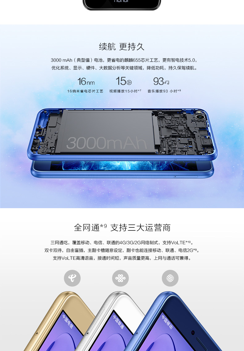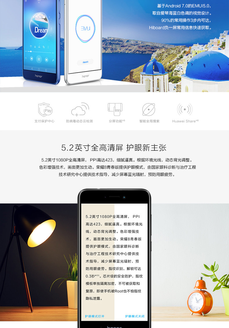 商品名称:荣耀8青春版手机 全网通(4GB+64G)顶配 4G智能手机
