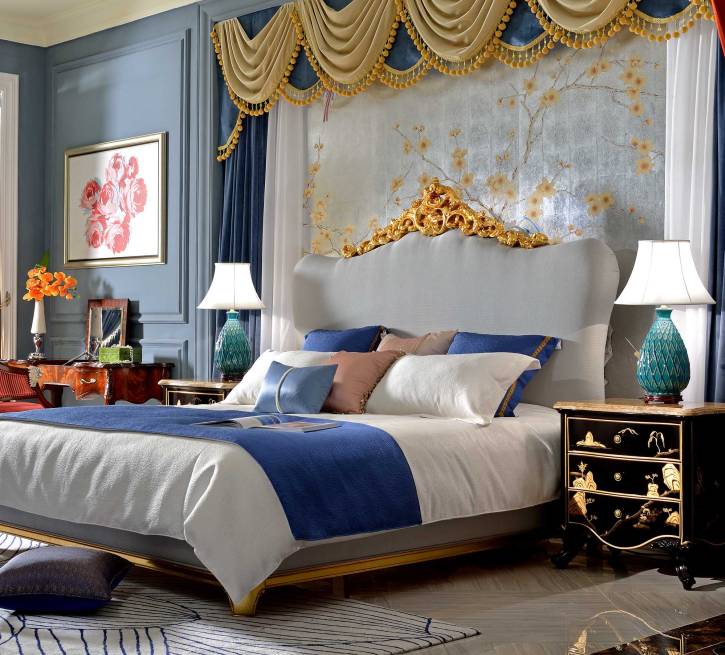 水晶等华美精致饰物和考究的手绘装饰画成为点睛之笔;