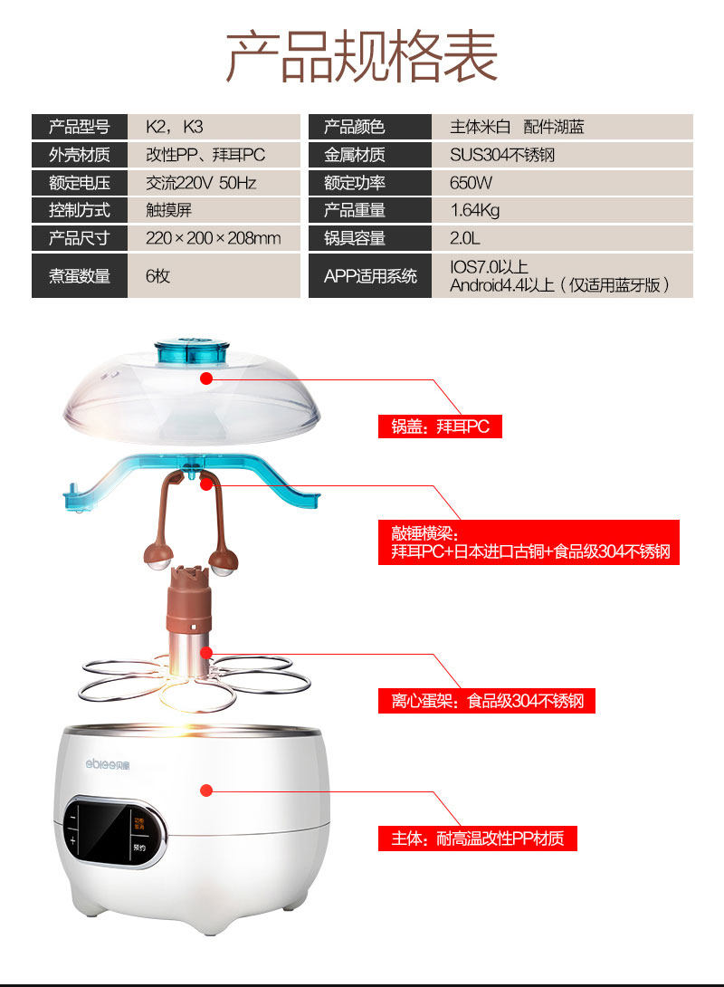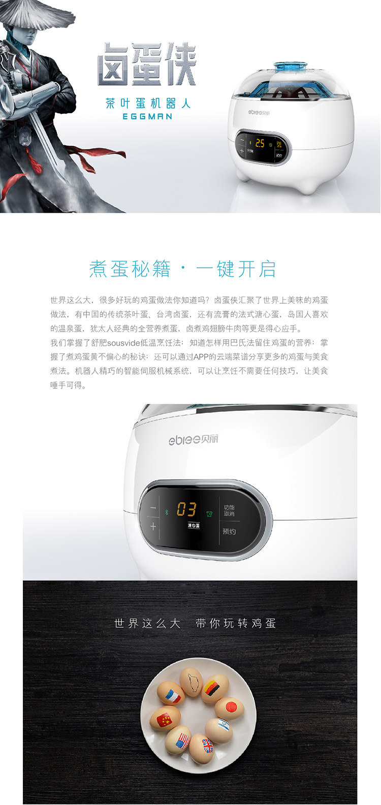 商品名称:贝丽多功能煮蛋器蒸蛋机器不锈钢茶叶卤蛋侠迷你低温智能无线蓝牙