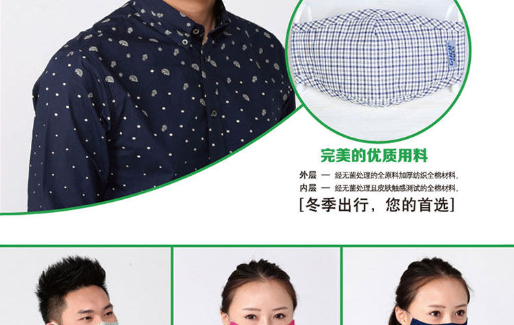 本款为无纺布可更换滤片口罩,采用敞开口试结构,方便更换滤片;超大异形结构滤芯,确保空气可全部经过净化进入人体;可更换滤片,便于清洗,降低使用成本
