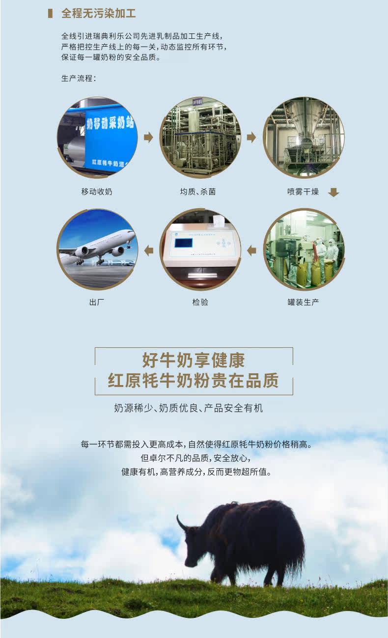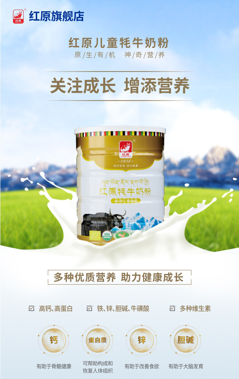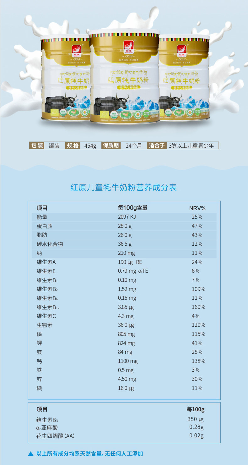 红原牦牛奶粉 儿童奶粉 青少年学生有机奶粉 高钙奶粉罐装 454g