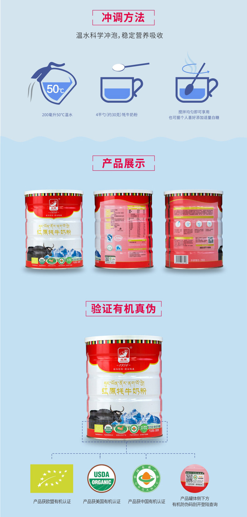 红原牦牛奶粉 全脂高钙成人有机奶粉 高原天然全家有机奶粉 454g