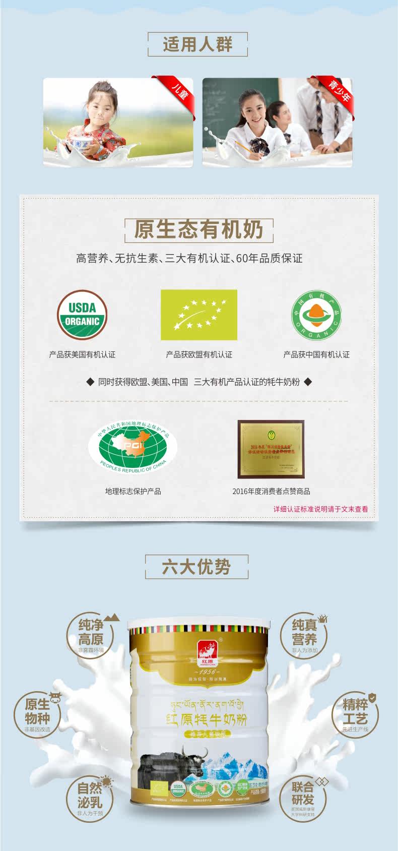 红原牦牛奶粉 学生青少年奶粉 儿童有机全脂奶粉 组合装454g*2罐