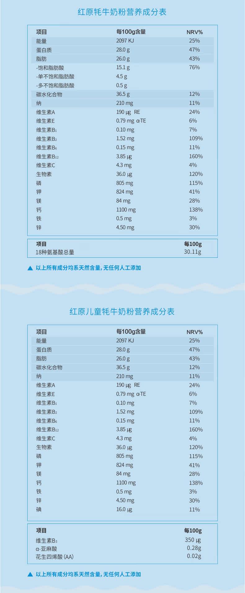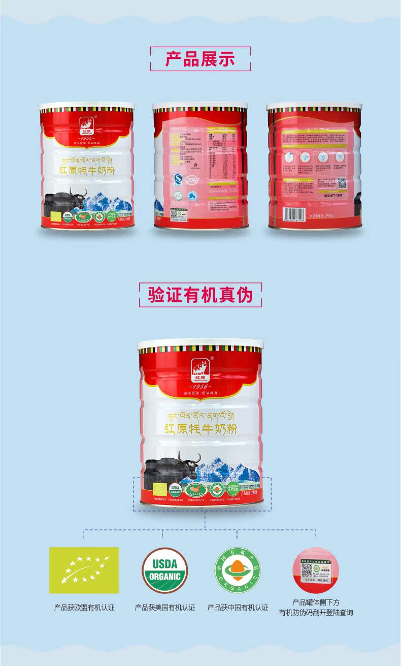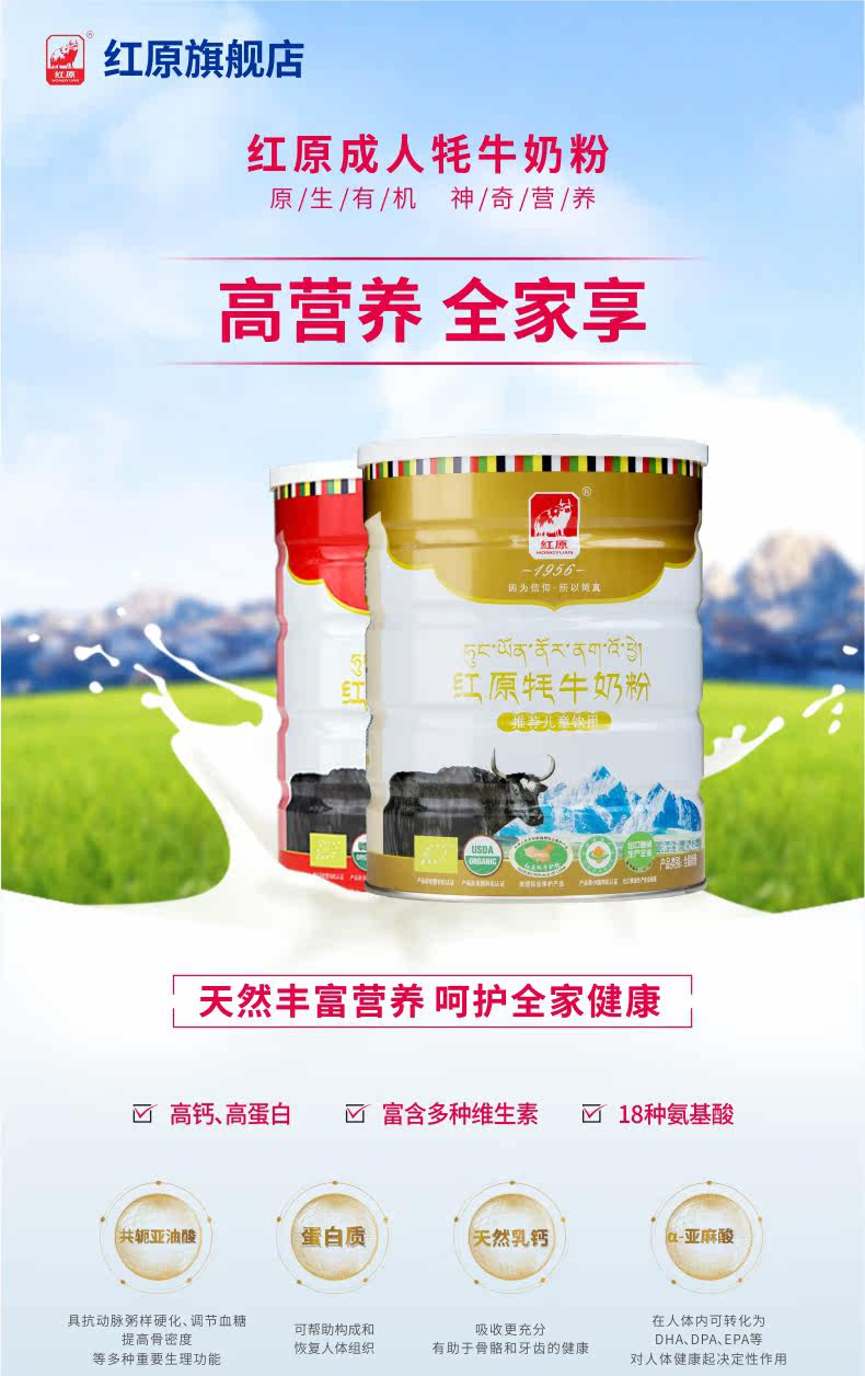 商品名称:红原牦牛奶粉儿童+有机组合装 儿童奶粉 高锌高钙成人奶粉454g*2