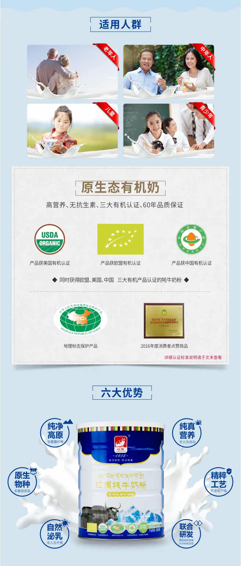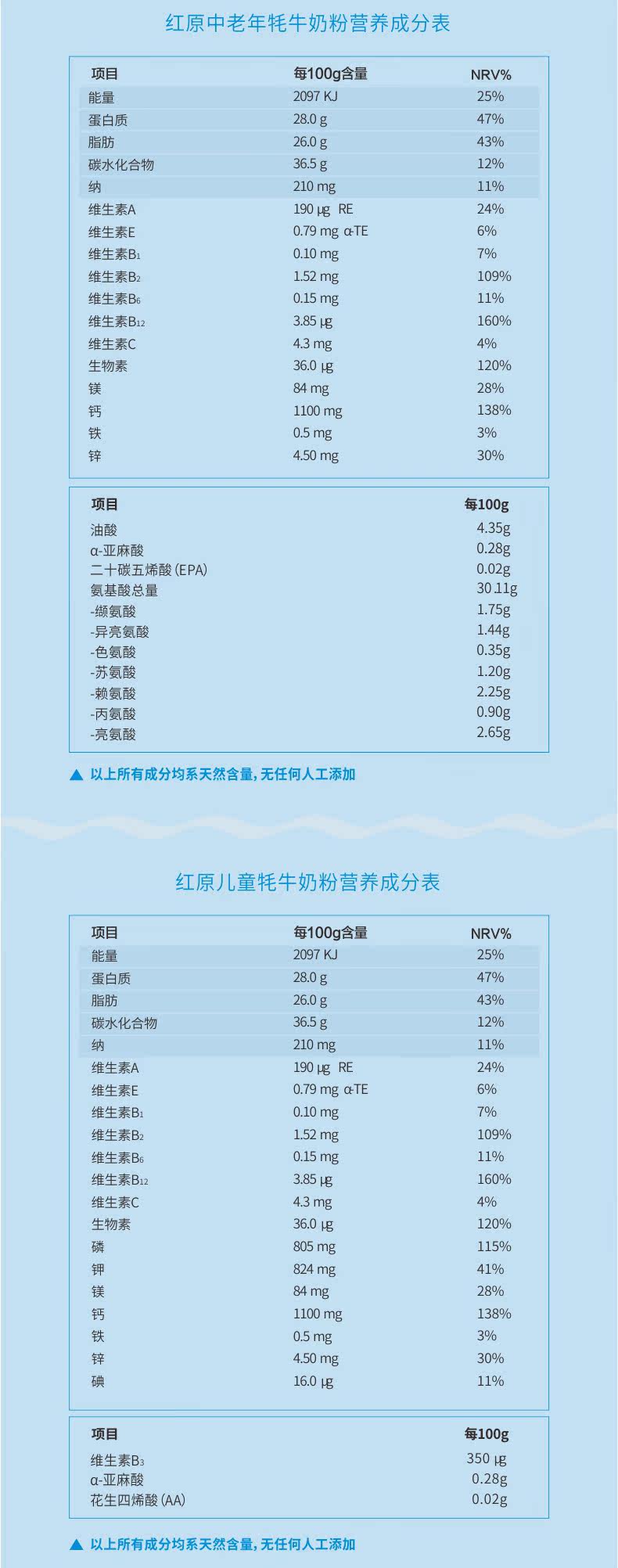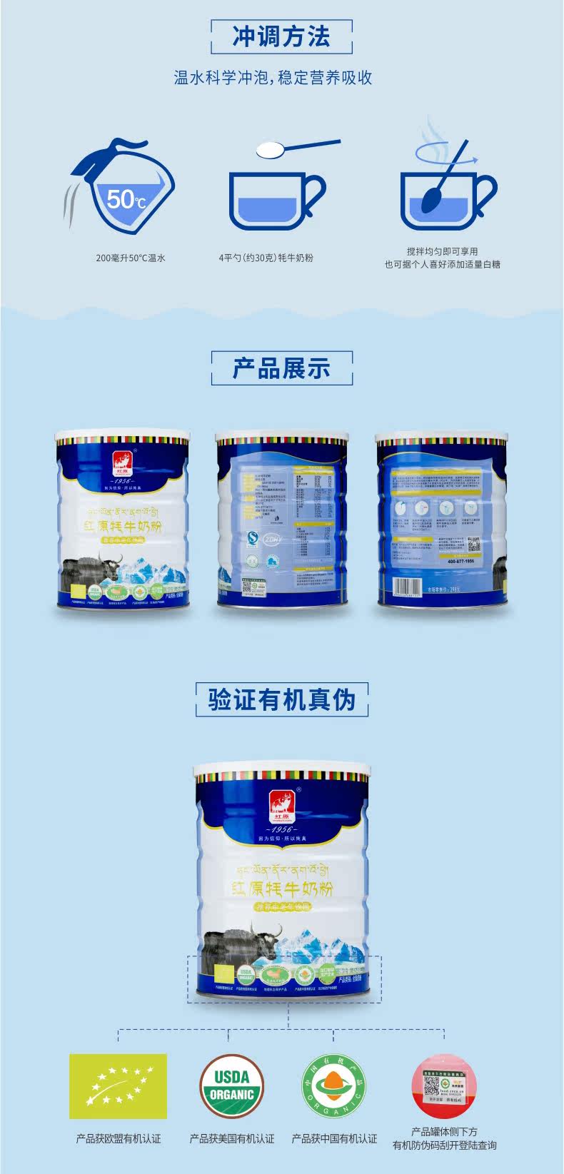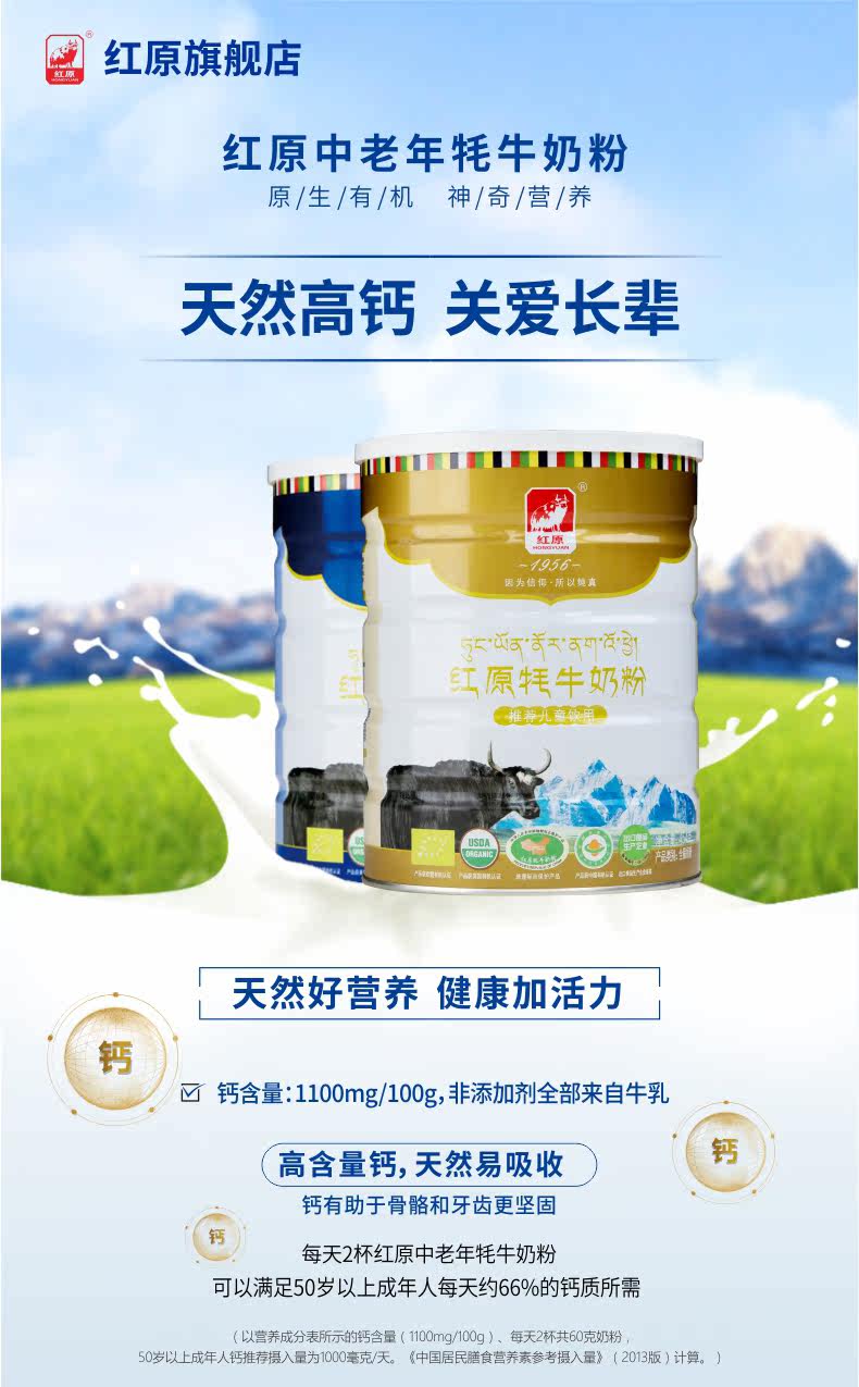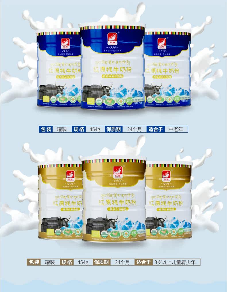 商品名称:红原牦牛奶粉 有机学生青少年中老年奶粉儿童+中老年组合装454g*2