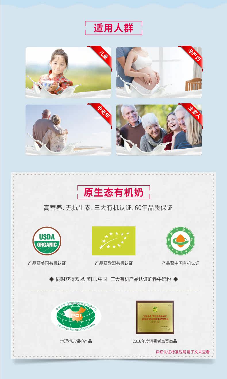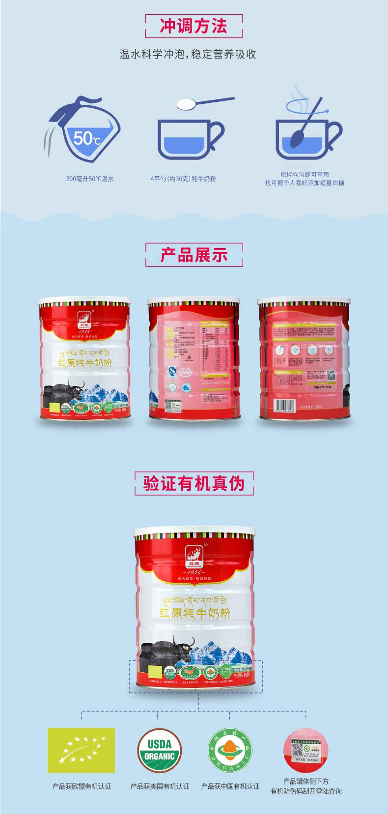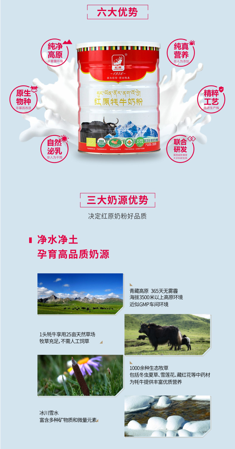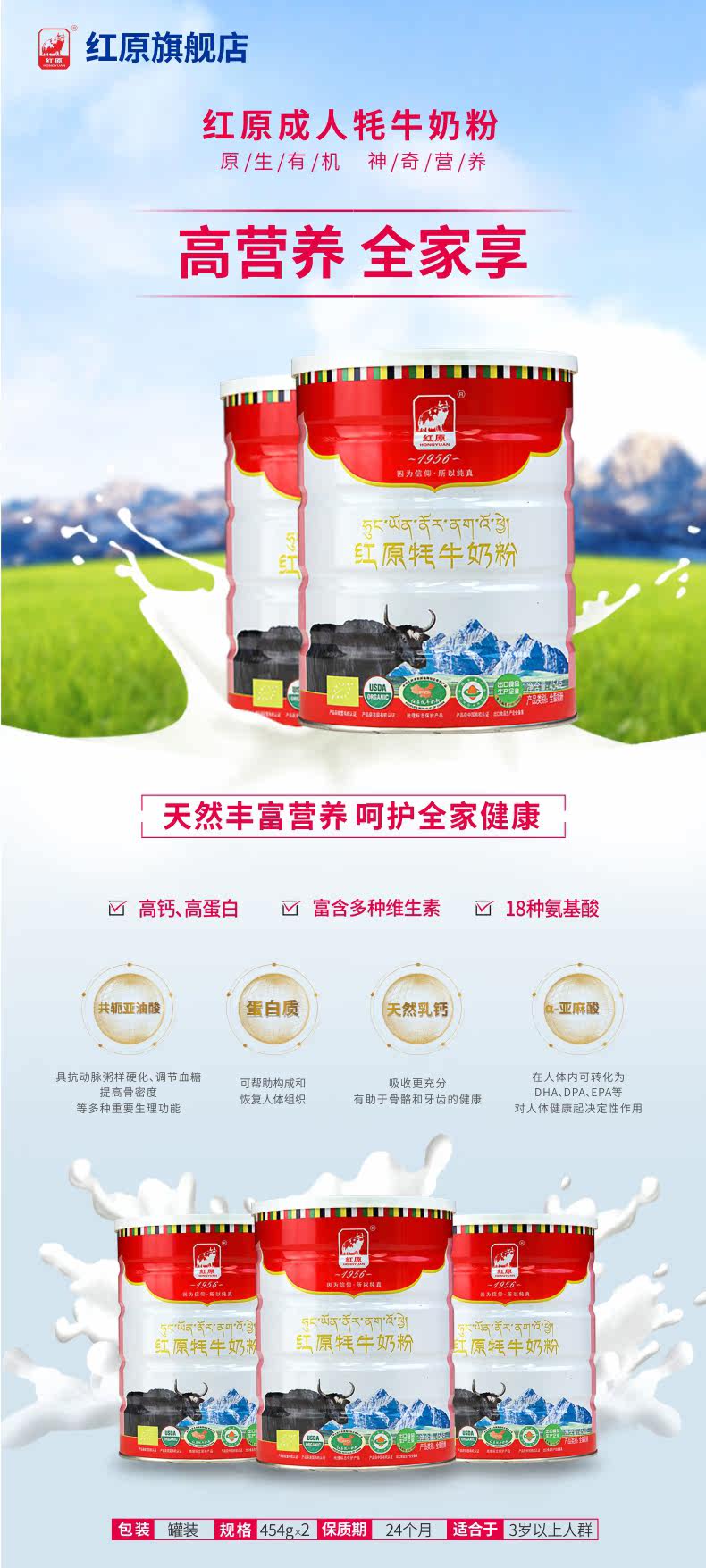 商品名称:红原牦牛成人奶粉 有机纯牦牛奶粉 全脂牦牛奶粉组合装454g*2罐
