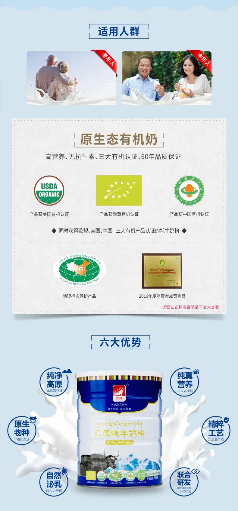 红原牦牛奶粉 有机全脂奶粉中老年奶粉 组合装 454g*2罐
