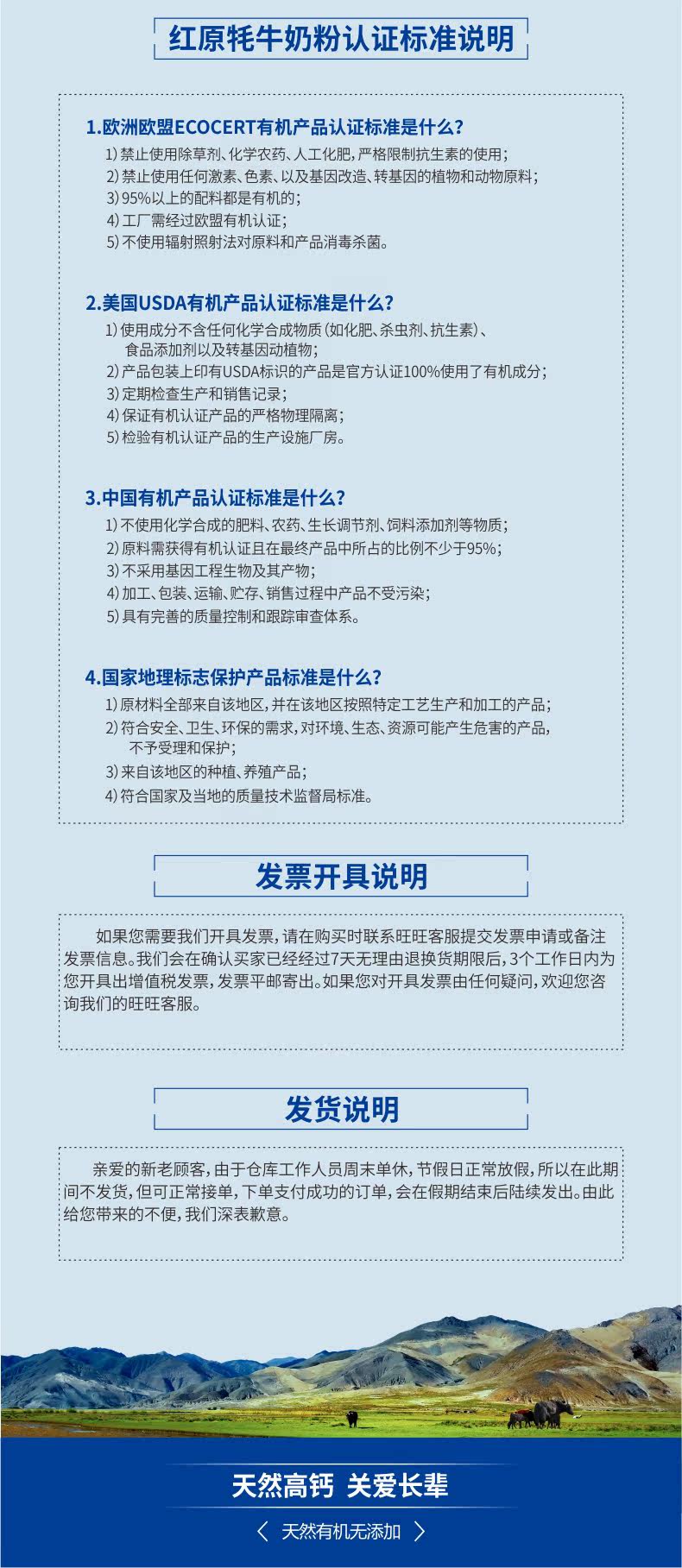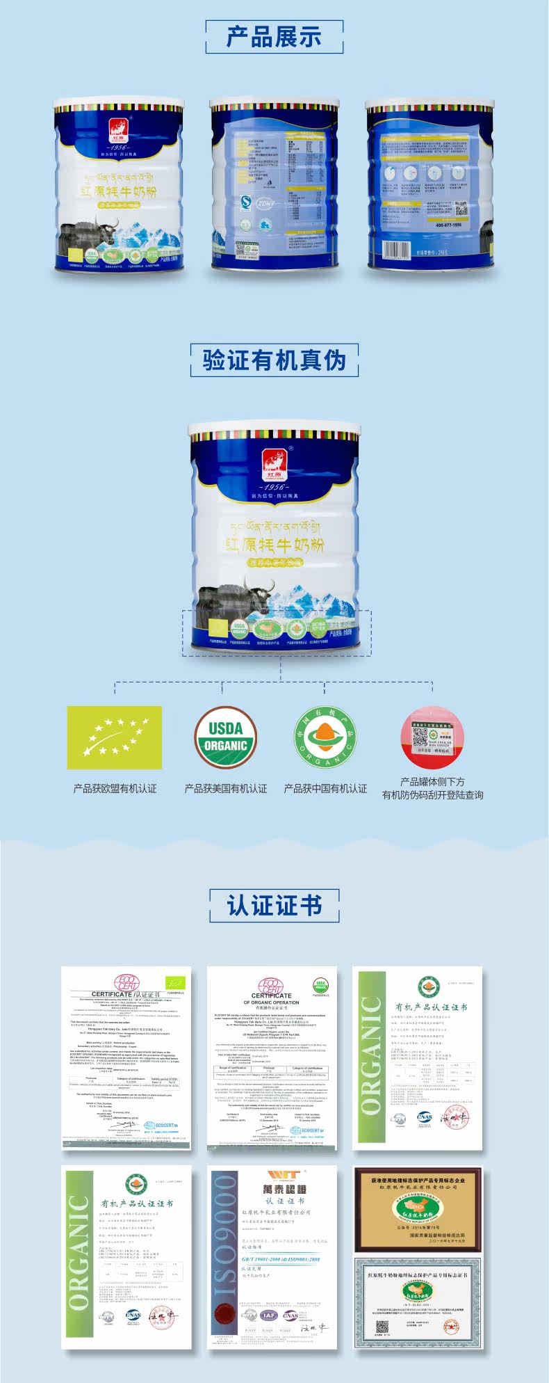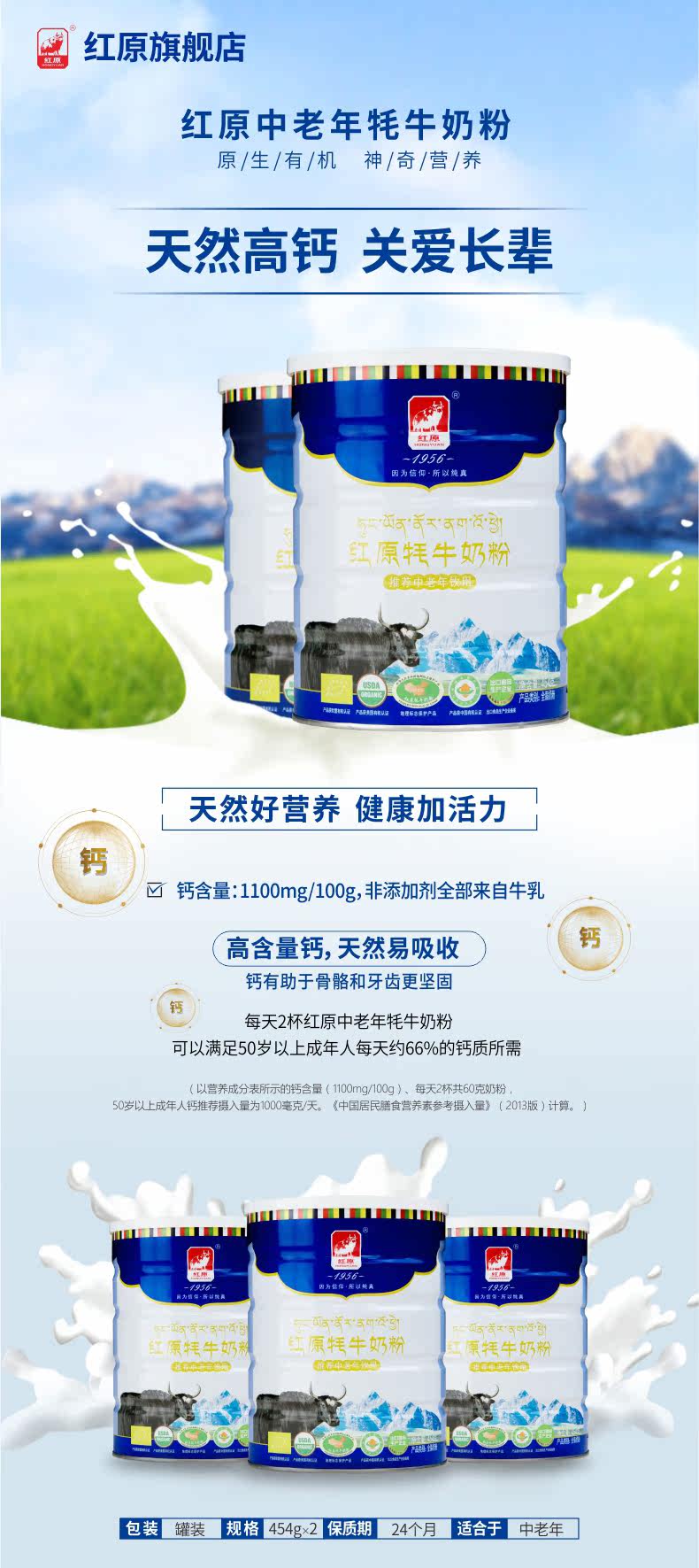 商品名称:红原牦牛奶粉 有机全脂奶粉中老年奶粉 组合装 454g*2罐
