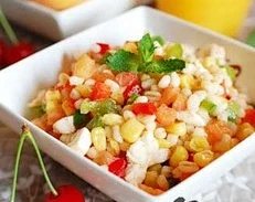 材料: 番茄 麦仁 青红椒 玉米粒 鸡丁