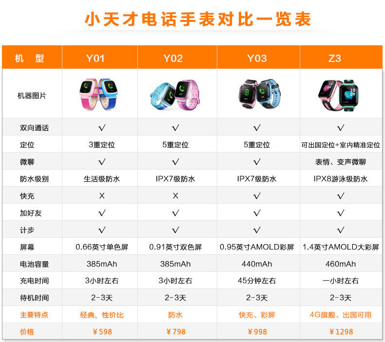 商品名称:小天才电话手表Z3儿童防水触摸屏电话跟踪手表小学生智能定位