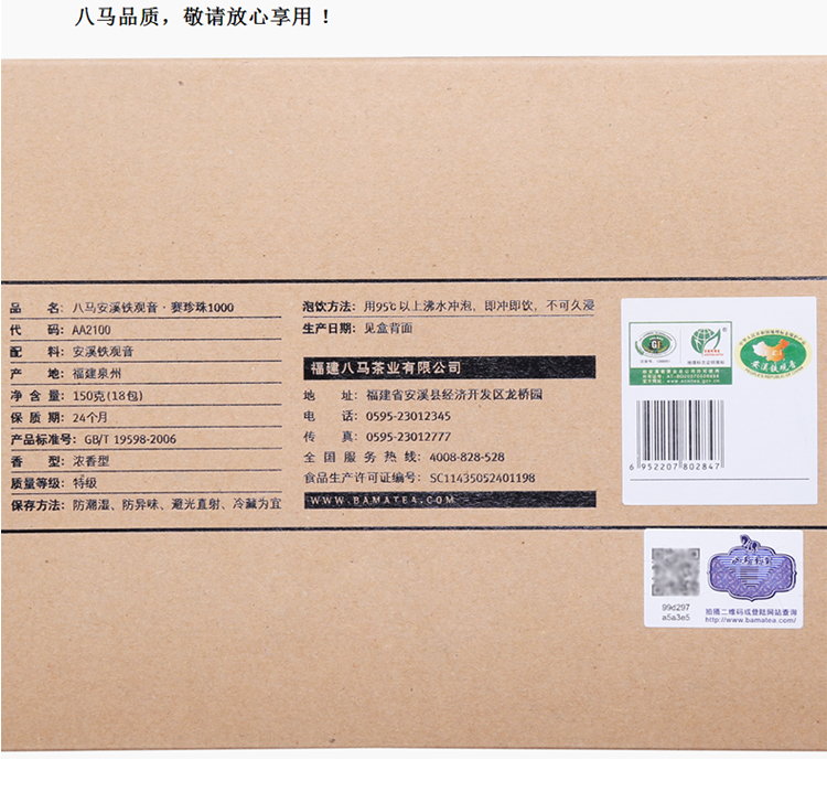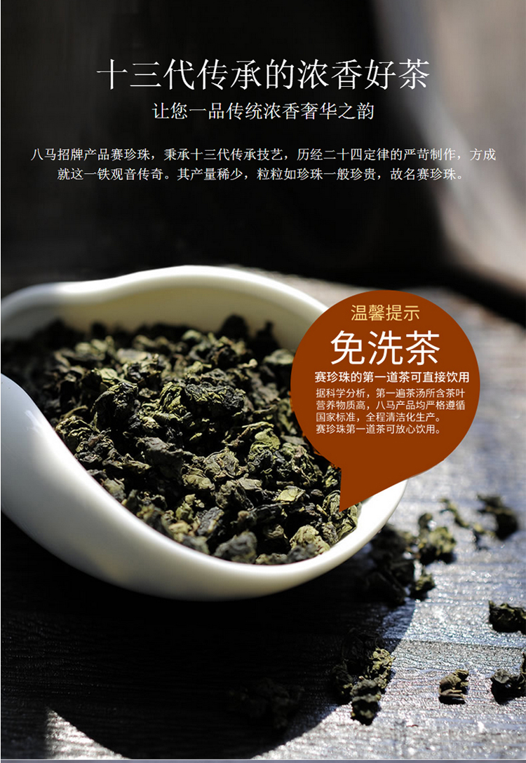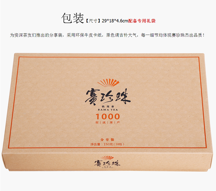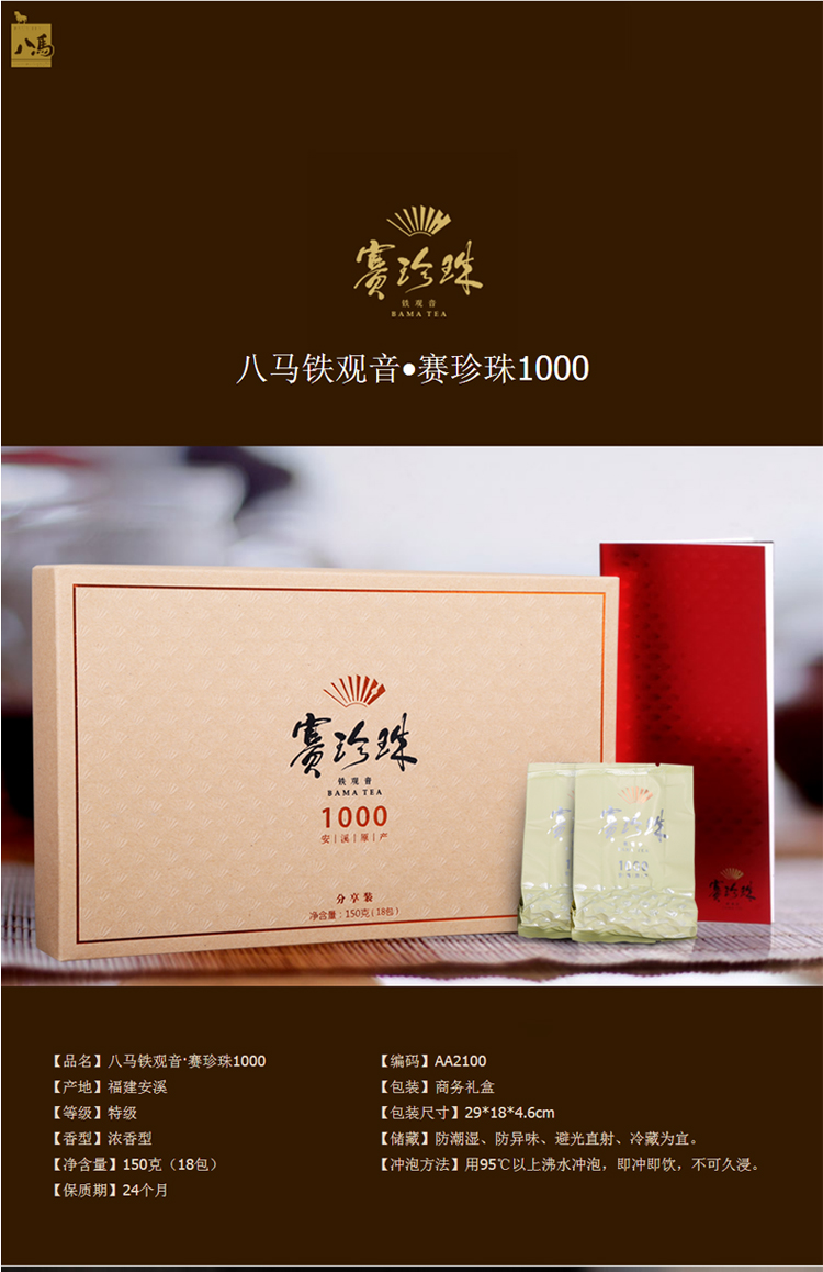 商品名称:八马新茶 铁观音茶叶 浓香型 赛珍珠1000 分享装 茶 安溪乌龙茶 简装茶叶150克