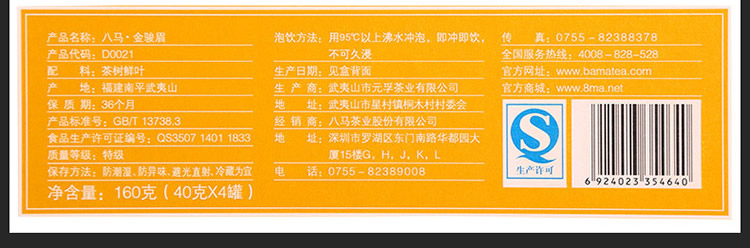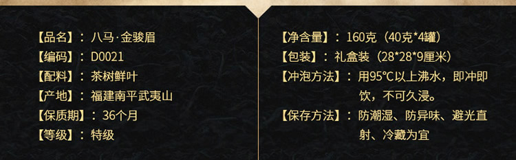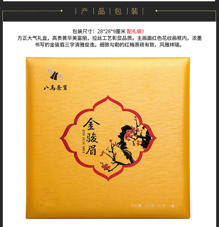 商品名称:八马茶业 金骏眉红茶礼盒 桐木关红茶茶叶 凤翎金骏眉160克