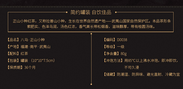 商品名称:八马茶业 正山小种 拉普山小种 武夷山红茶 圆罐装茶叶80克