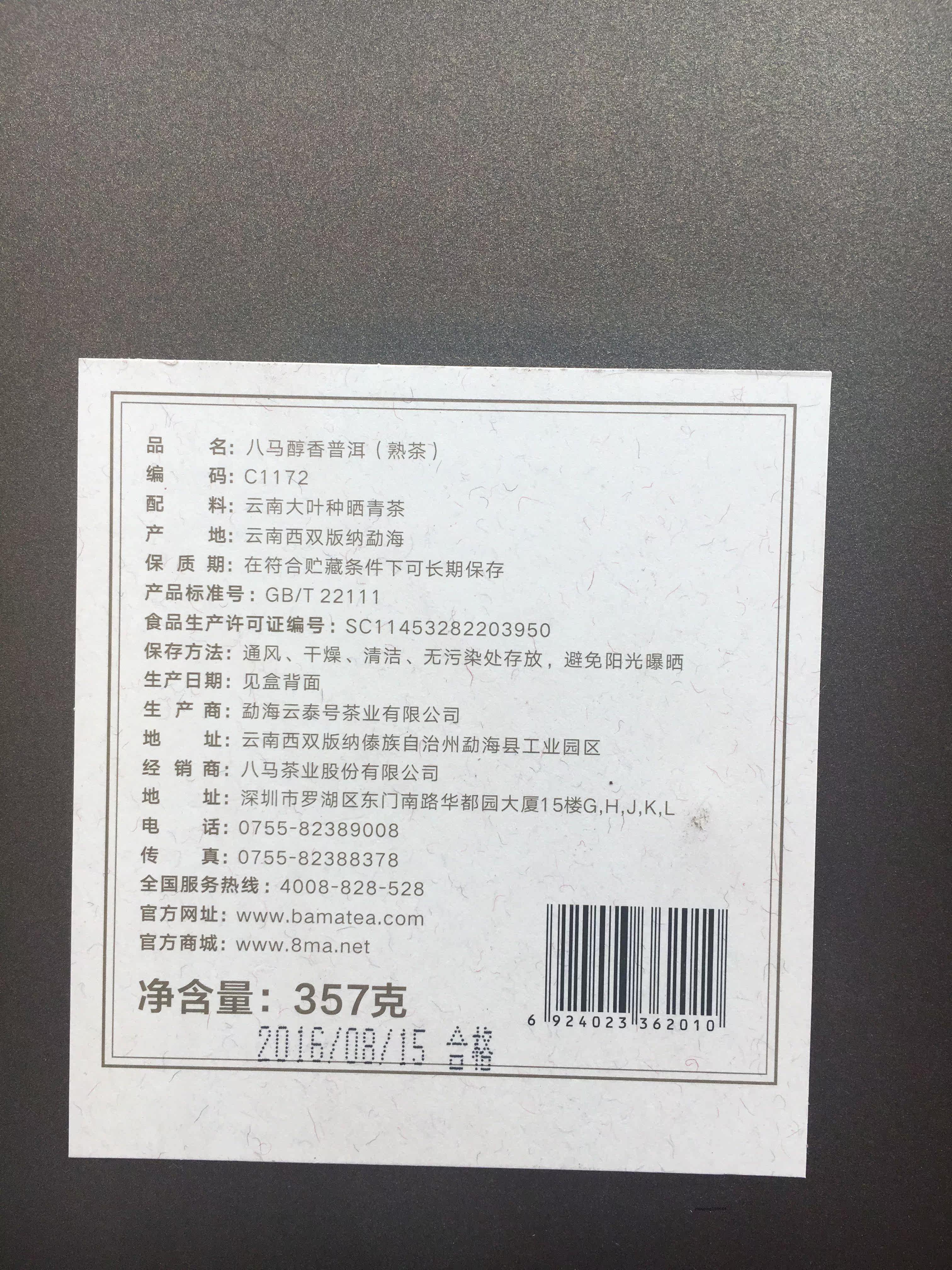商品名称:八马茶叶醇香普洱 普洱熟茶云南普洱茶叶大叶茶礼盒装357克包邮
