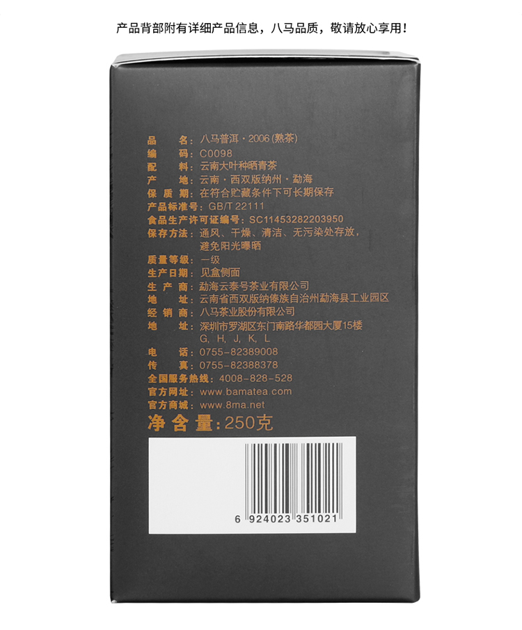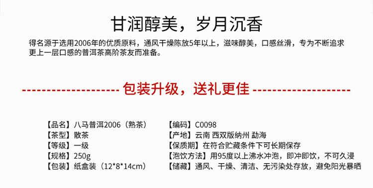 商品名称:八马茶叶 云南普洱 信记2006 熟普洱茶 散茶 家庭装黑茶茶叶250克