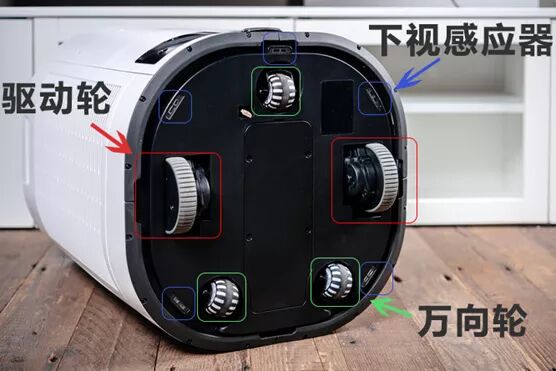 作为一个会走的空气净化机器人,沁宝AA30机身底部有一套行动装置。