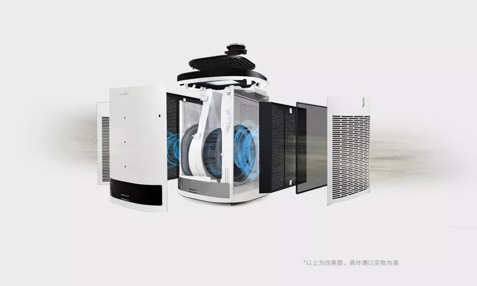 沁宝AA30采用了时下流行的双涡轮双风道结构,机器中部是双风机,工作时从两侧吸入空气,然后经由初效过滤层、抑菌过滤层、H13级HEPA过滤层和活性炭过滤层组成的四层渐进式过滤系统,最后从机器顶部释放出洁净的空气。