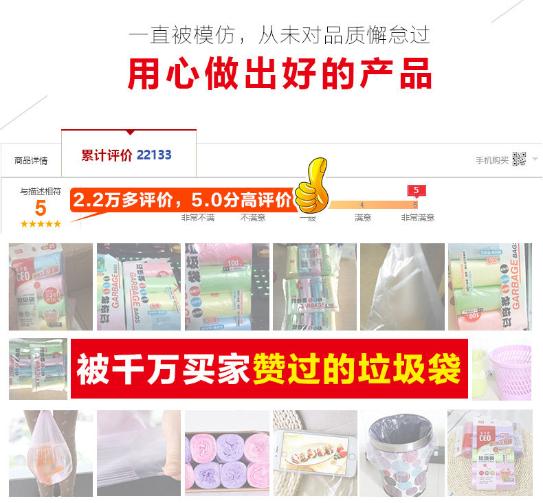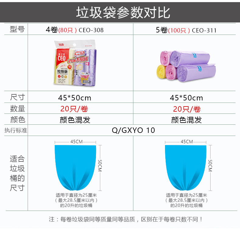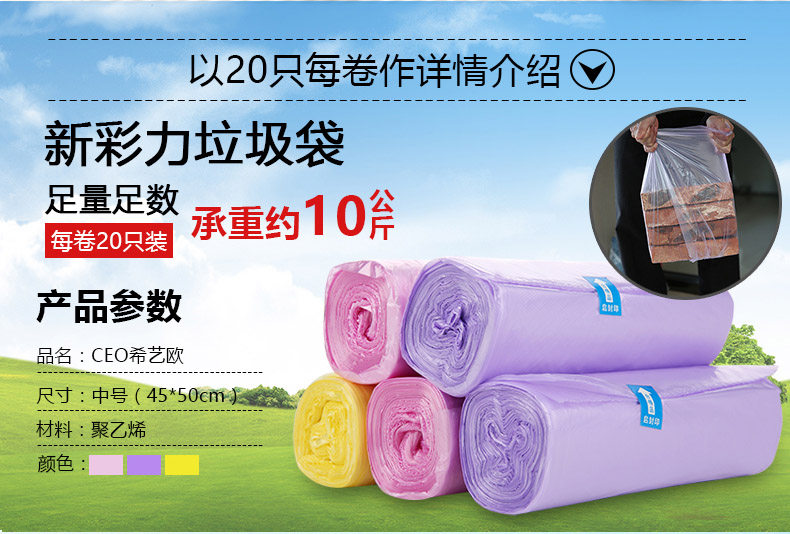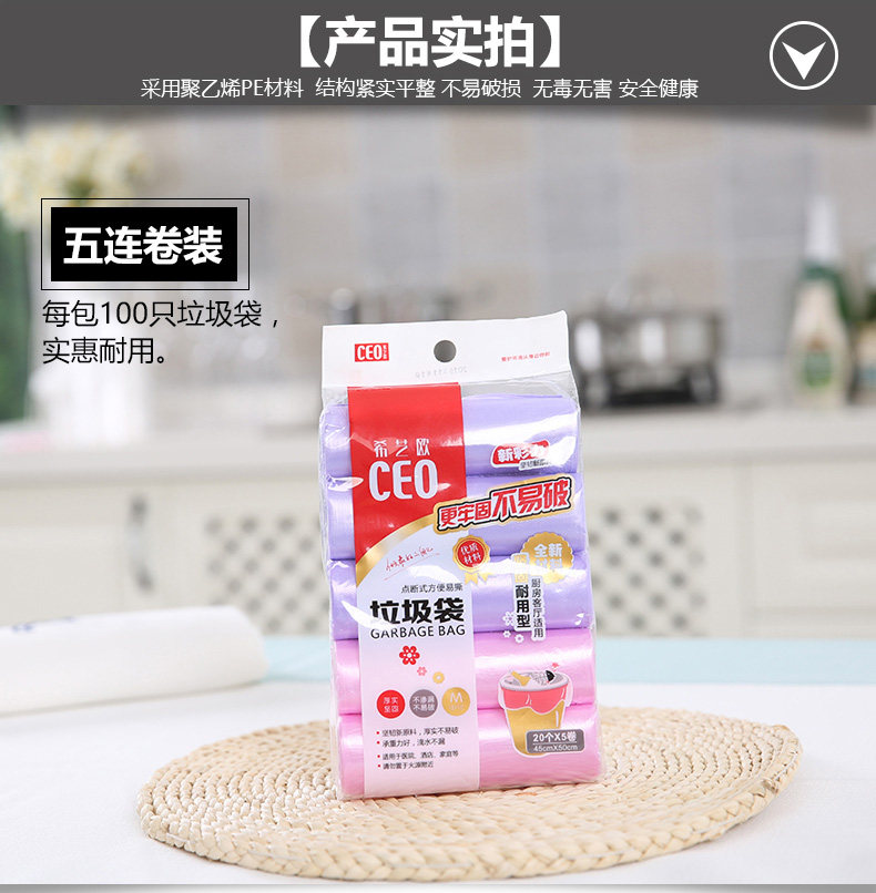 商品名称:CEO希艺欧垃圾袋家用办公室厨房卫生间一次性点断式塑料袋5卷加厚