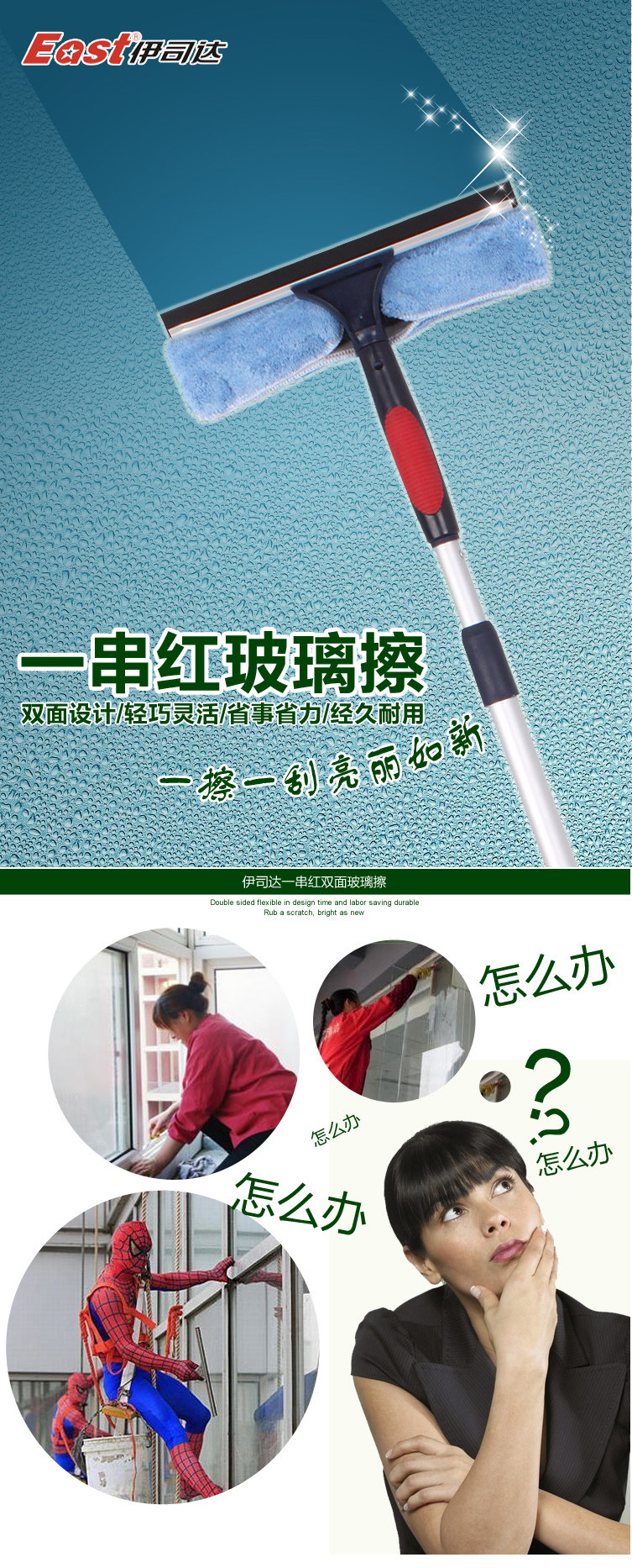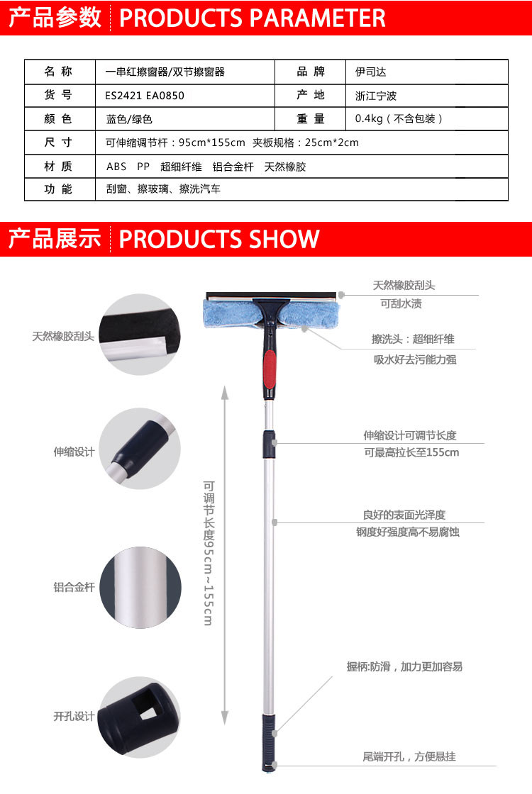 伊司达擦玻璃刮器清洁神器玻璃刷刮水伸缩杆高楼擦窗器搽刷工具