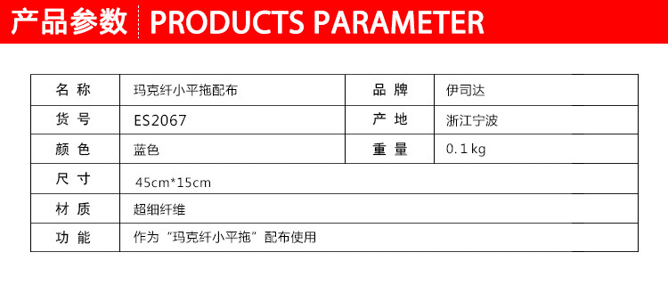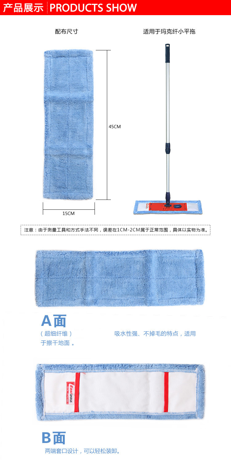 本产品为伊司达小平拖的专用原装配布。适用于40X10的拖把板子