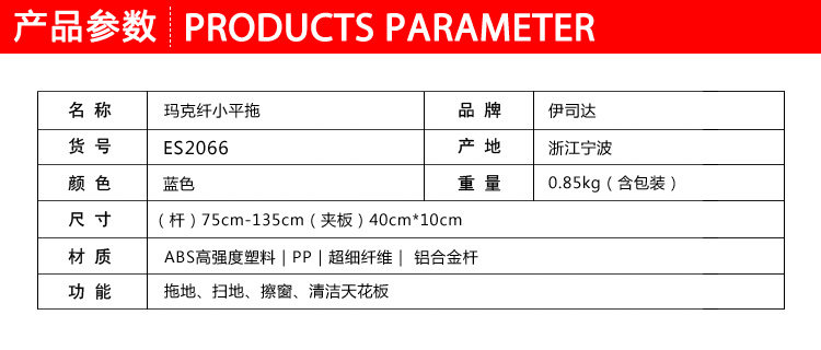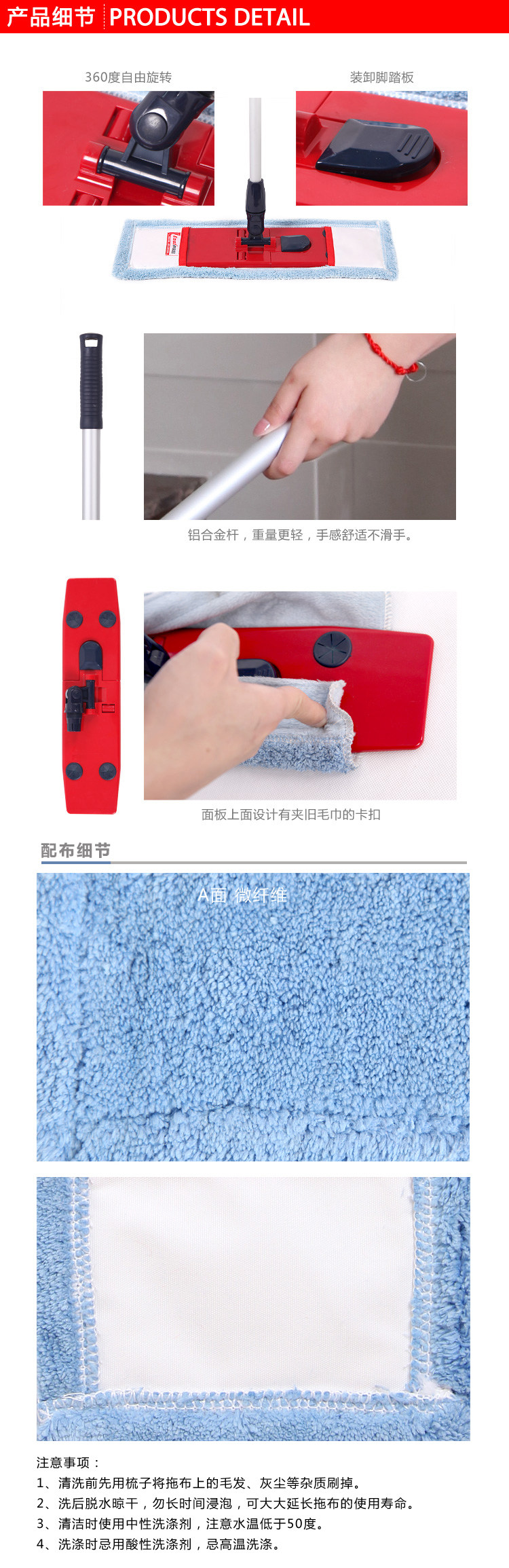 商品名称:伊司达木地板瓷砖布套式玛克纤平板拖把夹毛巾家用小平拖把布尘推