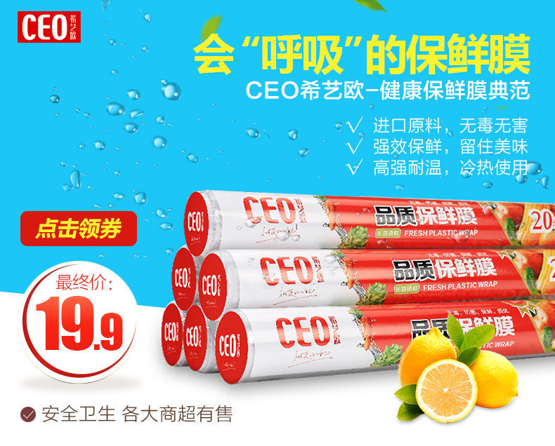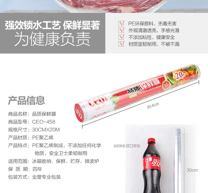 商品名称:CEO希艺欧保鲜膜家用食品水果蔬菜厨房冷藏冰箱微波炉加厚大卷