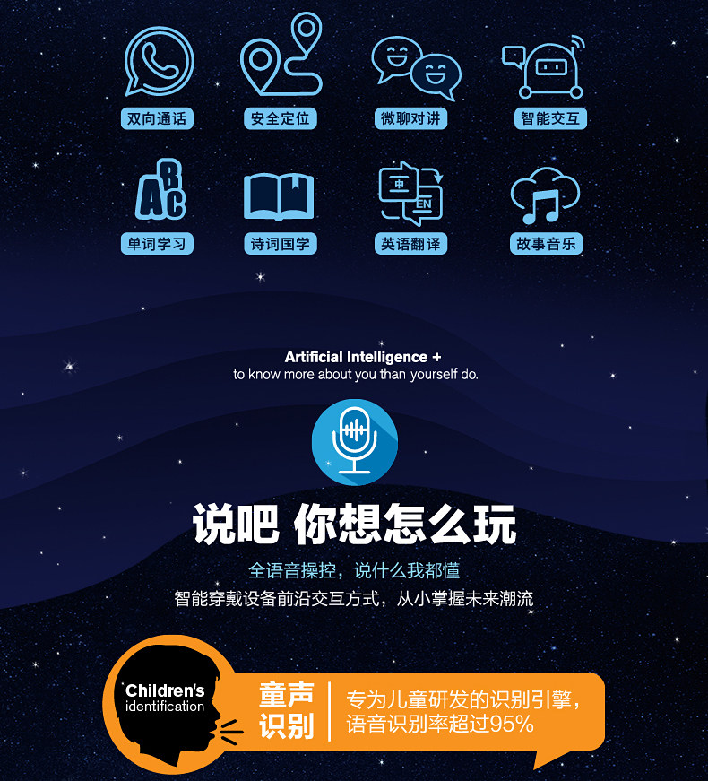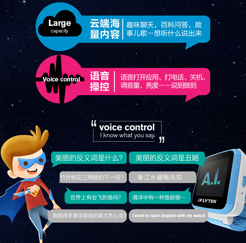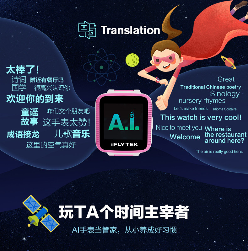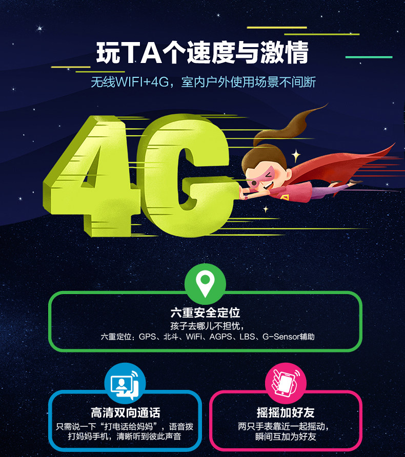 商品名称:科大讯飞4G儿童手表TYW4全语音操控双向通话学生定位智能电话手表