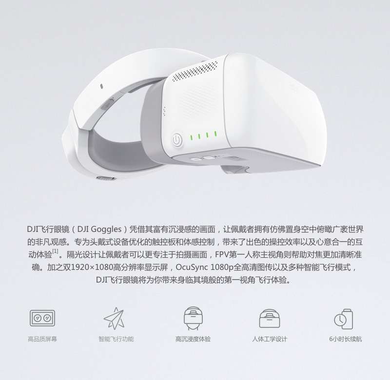 商品名称:DJI 大疆 Goggles 御 精灵 悟 FPV 眼镜 头戴高清飞行眼镜 DJI 飞行眼镜