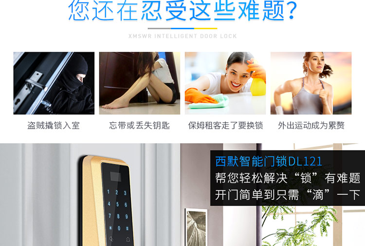 商品名称:西默ximo DL121 智能门锁指纹锁电子锁 智能家居 APP远程控制大门锁