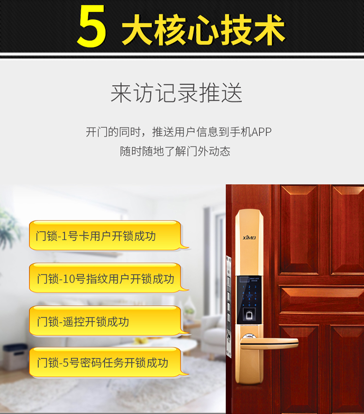 西默ximo L2 智能门锁 家用指纹电子锁 APP远程控制