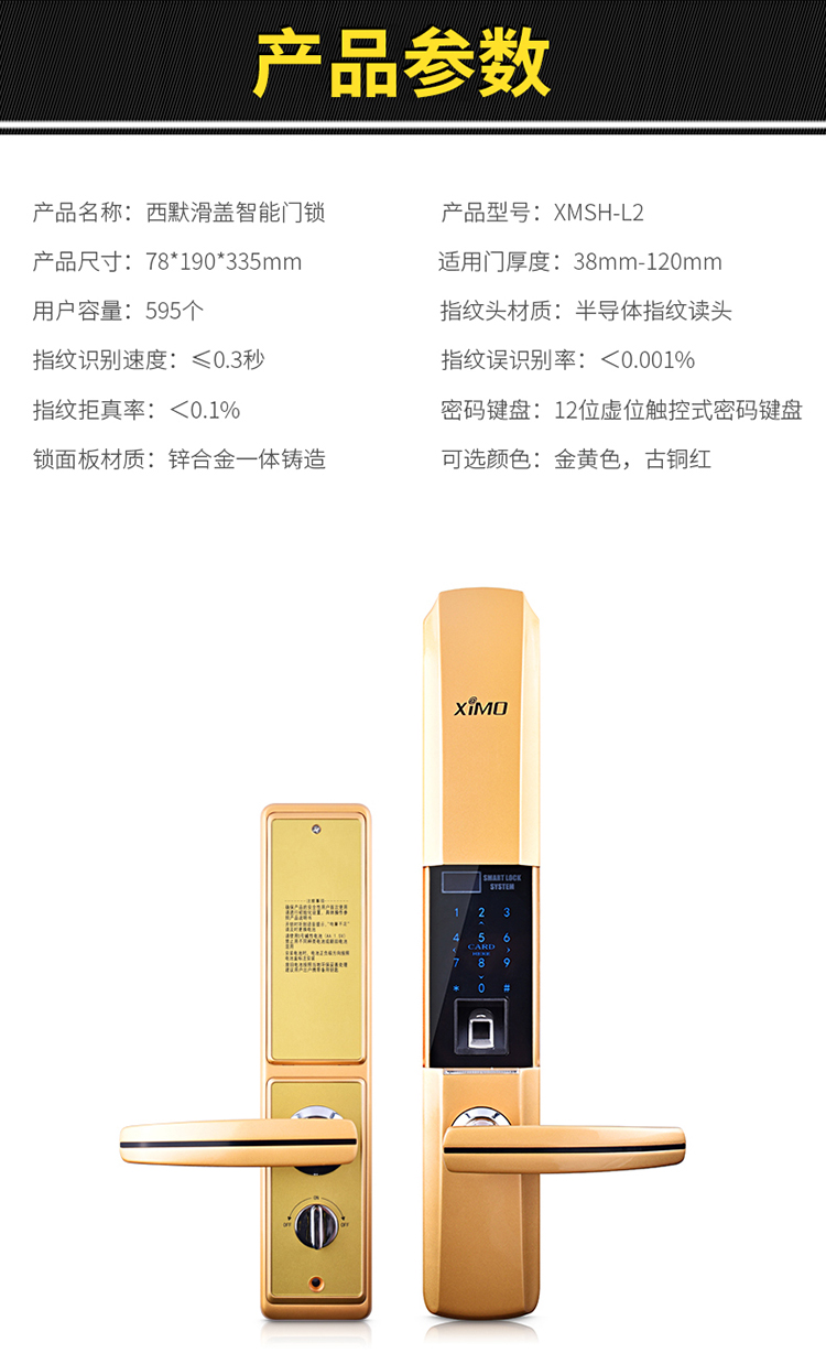商品名称:西默ximo L2 智能门锁 家用指纹电子锁 APP远程控制