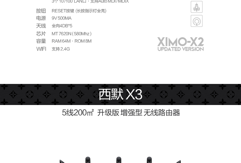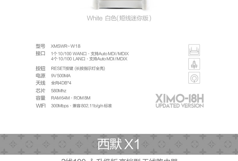 商品名称:西默 ximo wifi无线路由器 大功率智能路由器穿墙王