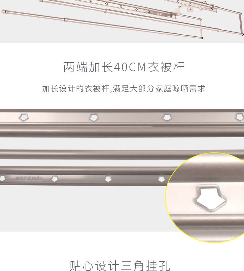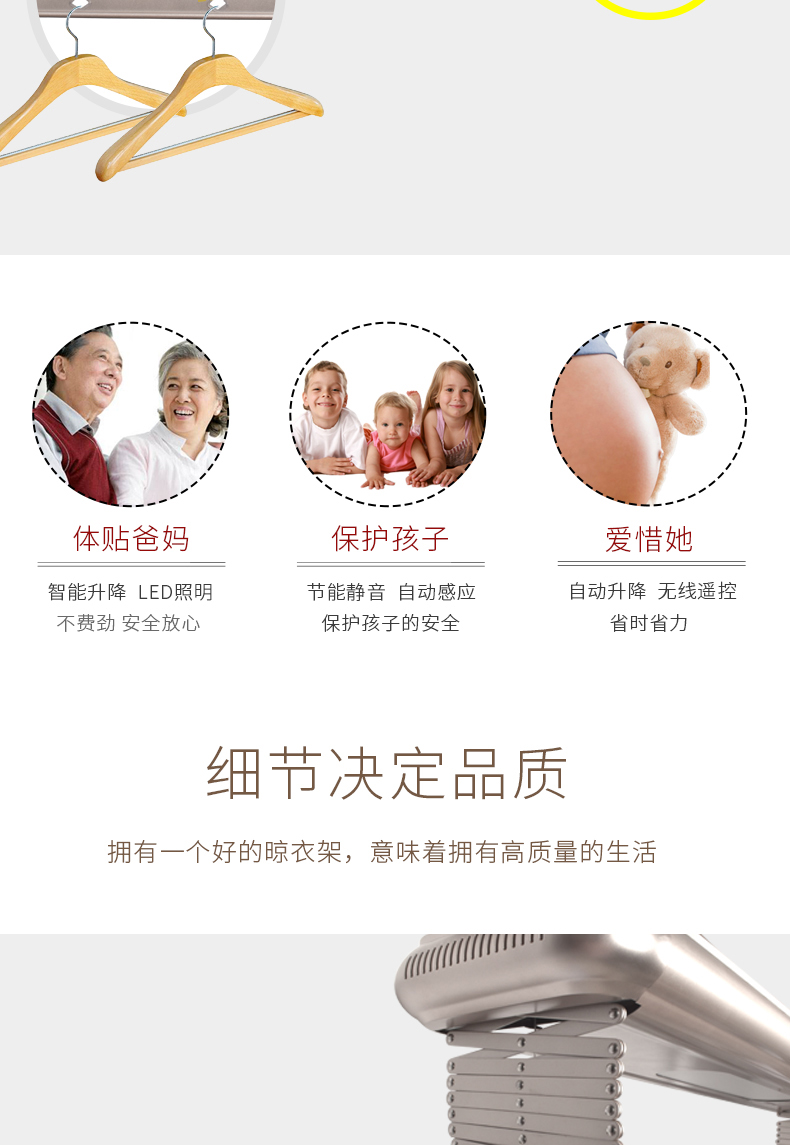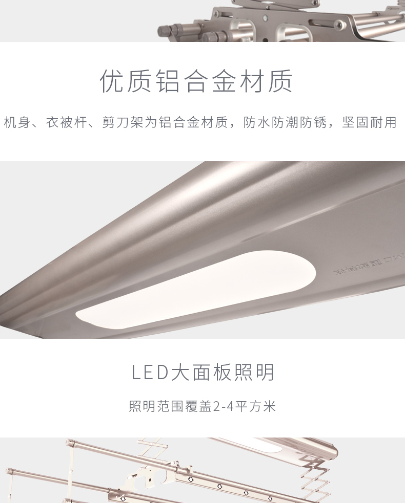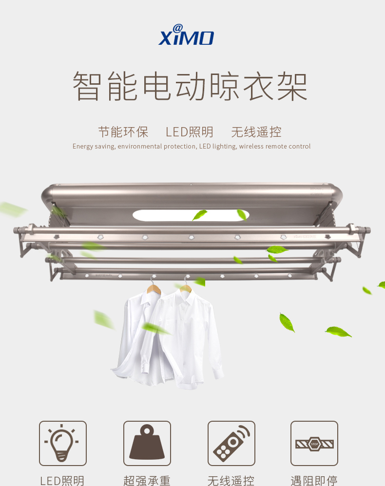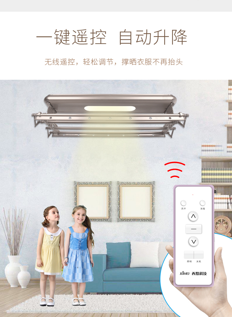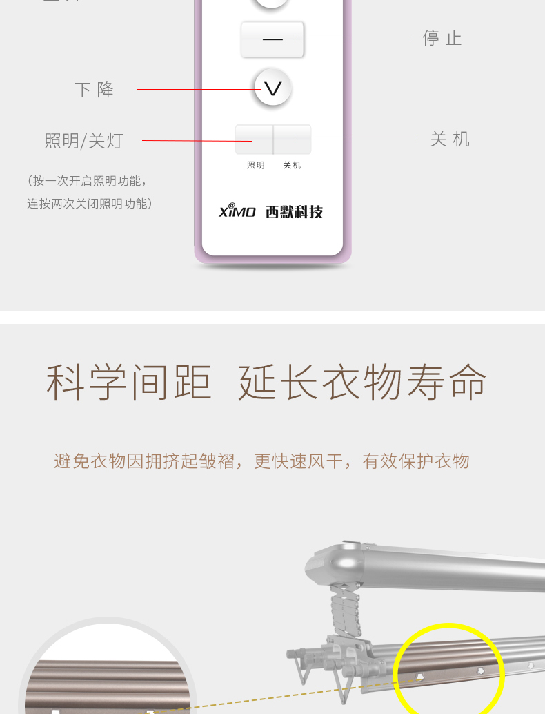 商品名称:西默ximo 智能电动晾衣架机 阳台遥控智能自动升降吊顶伸缩晒凉衣杆机 香槟色