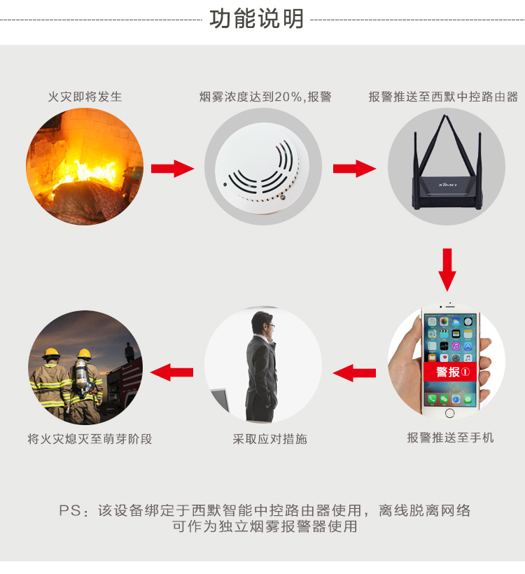 商品名称:西默ximo SA71 智能烟雾报警器 智能家居防火灾灵敏烟感器