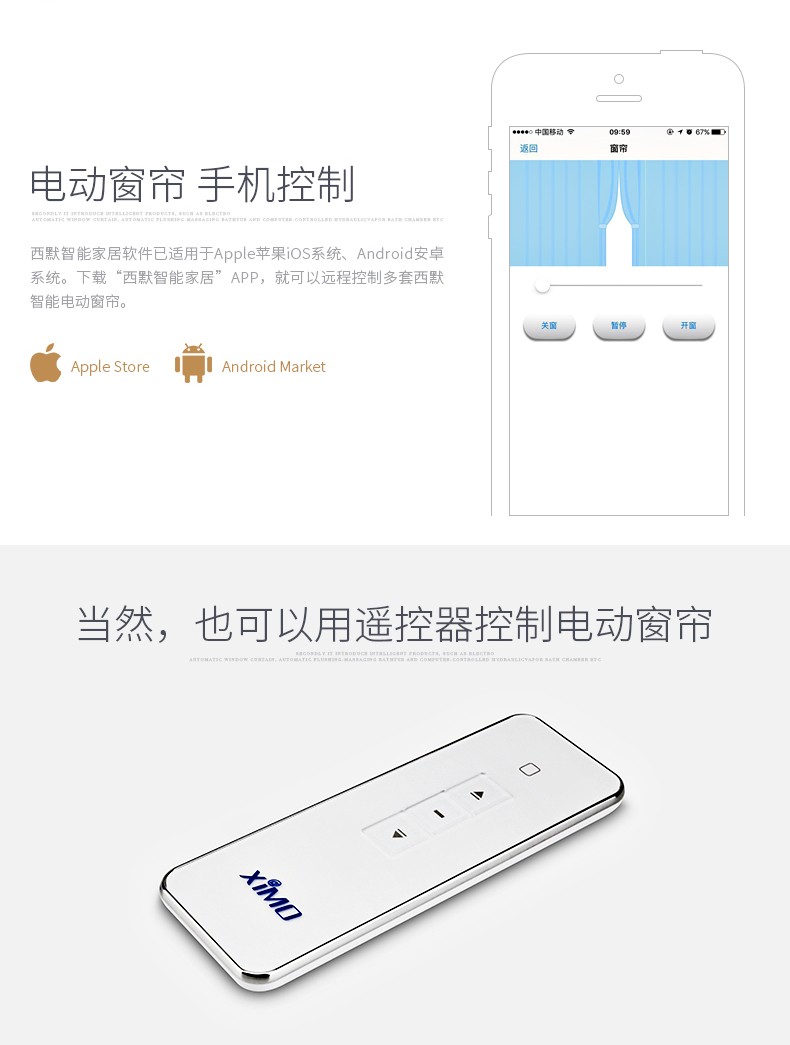 商品名称:西默ximo电动窗帘智能遥控 手机APP/WIFI远程控制窗帘轨道电机遥控器