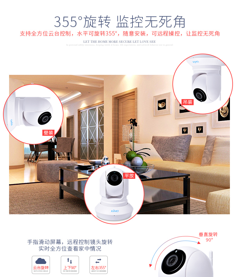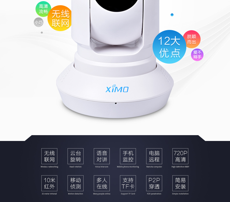 商品名称:西默ximo PT100 无线摄像头 智能家居WIFI摄像机远程监控器