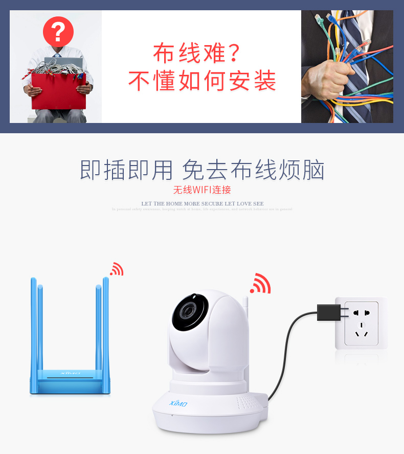 西默ximo PT100 无线摄像头 智能家居WIFI摄像机远程监控器