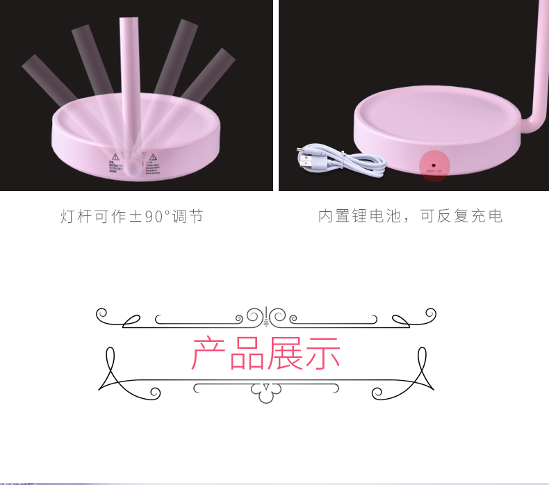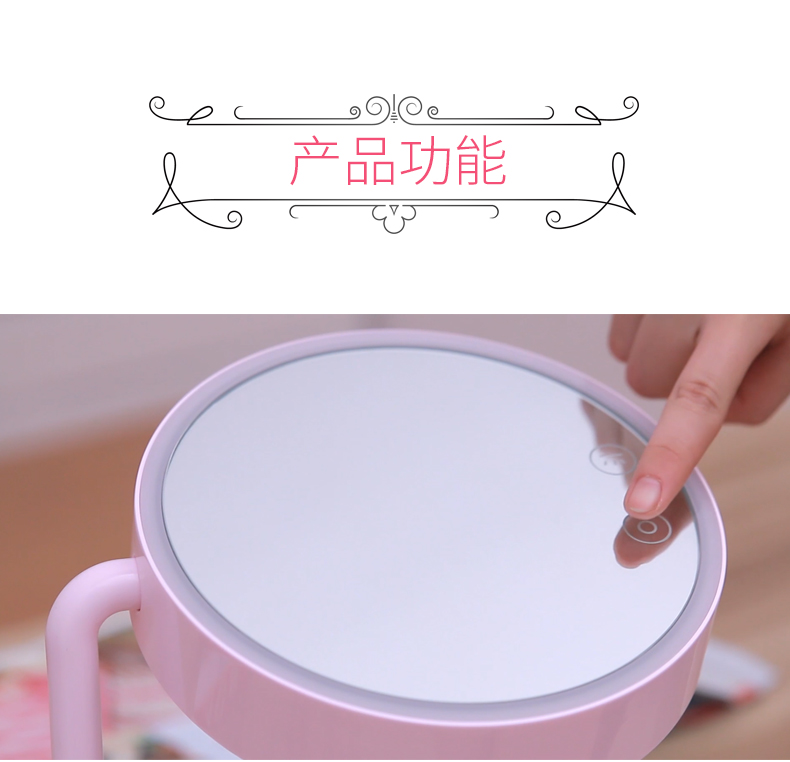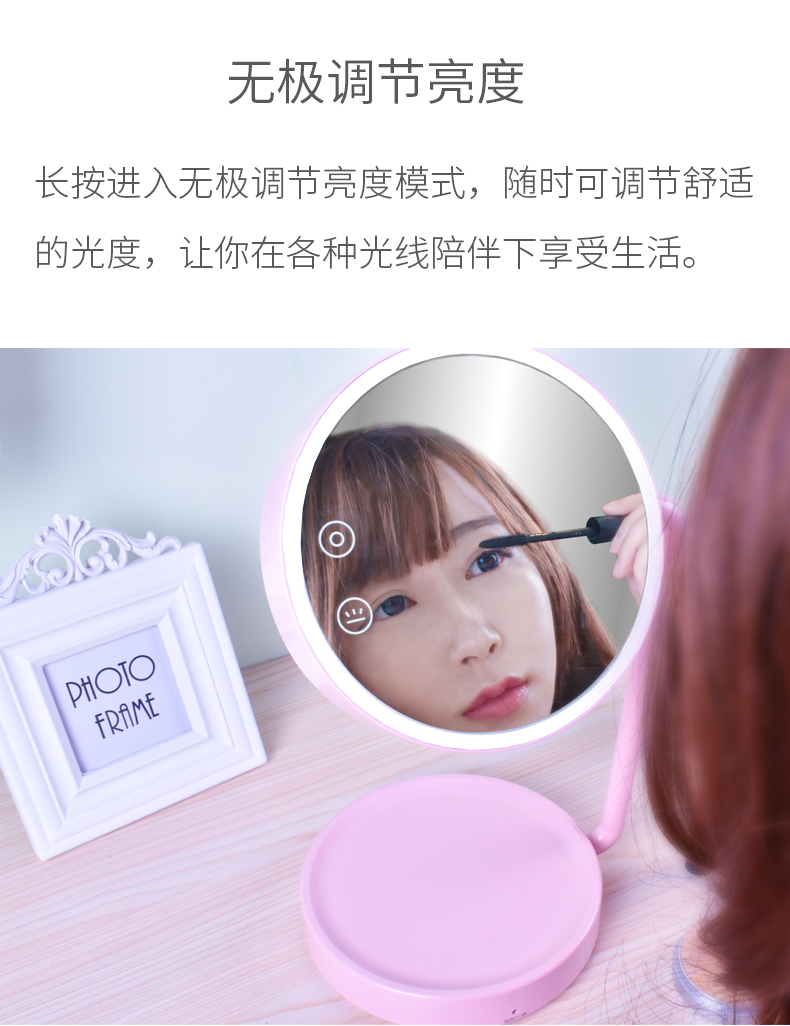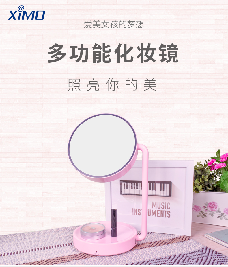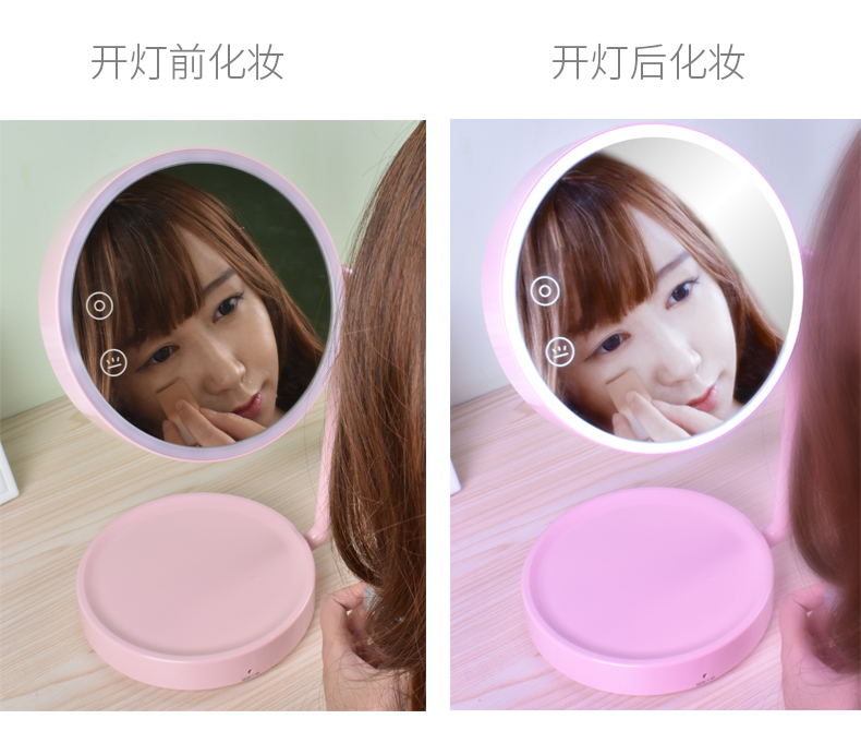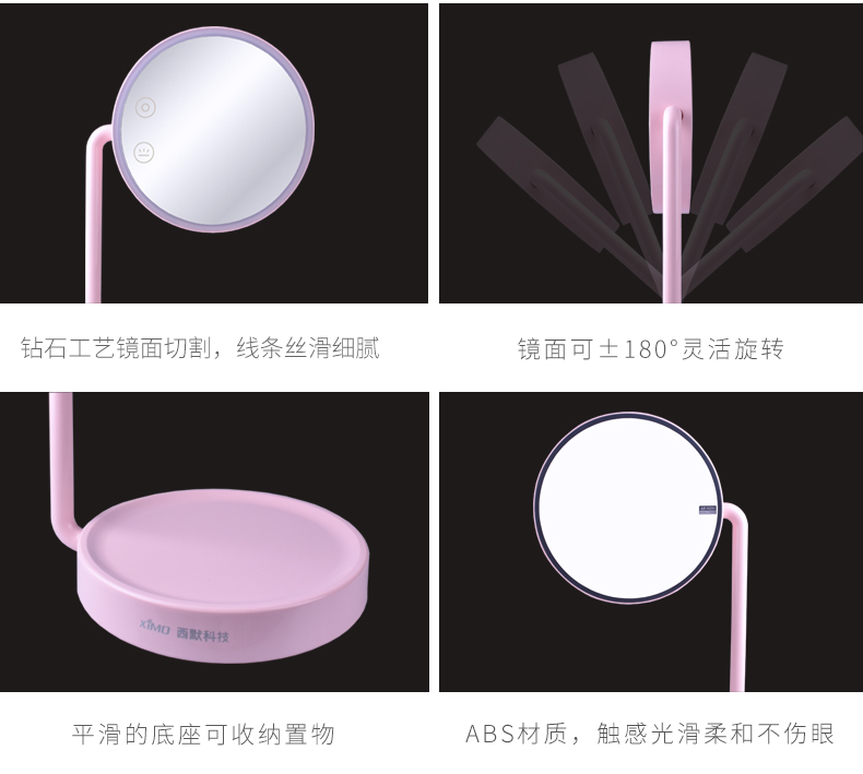 商品名称:西默 LED化妆镜子带灯大号创意公主台灯充电台式桌面梳妆发光粉色 粉红色