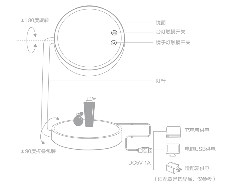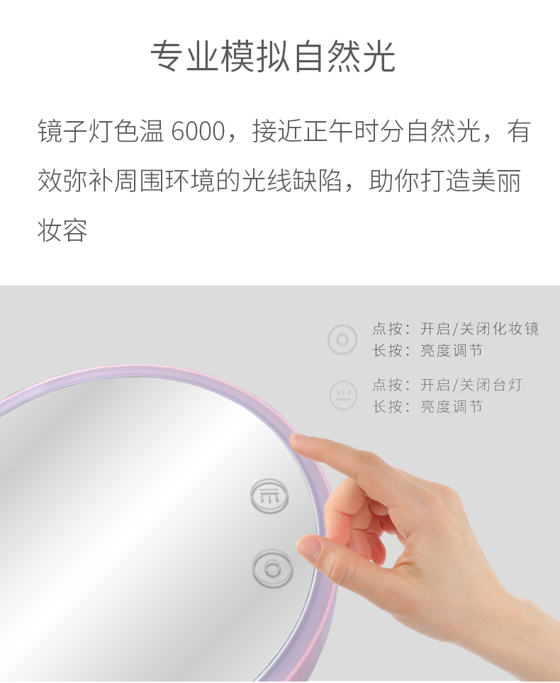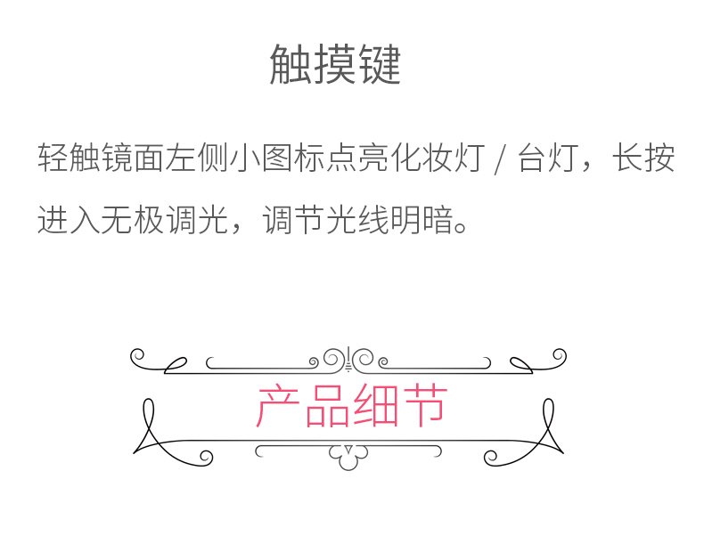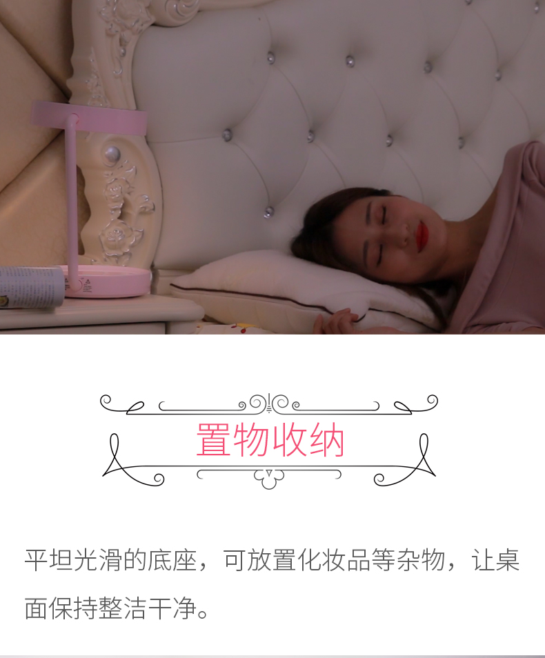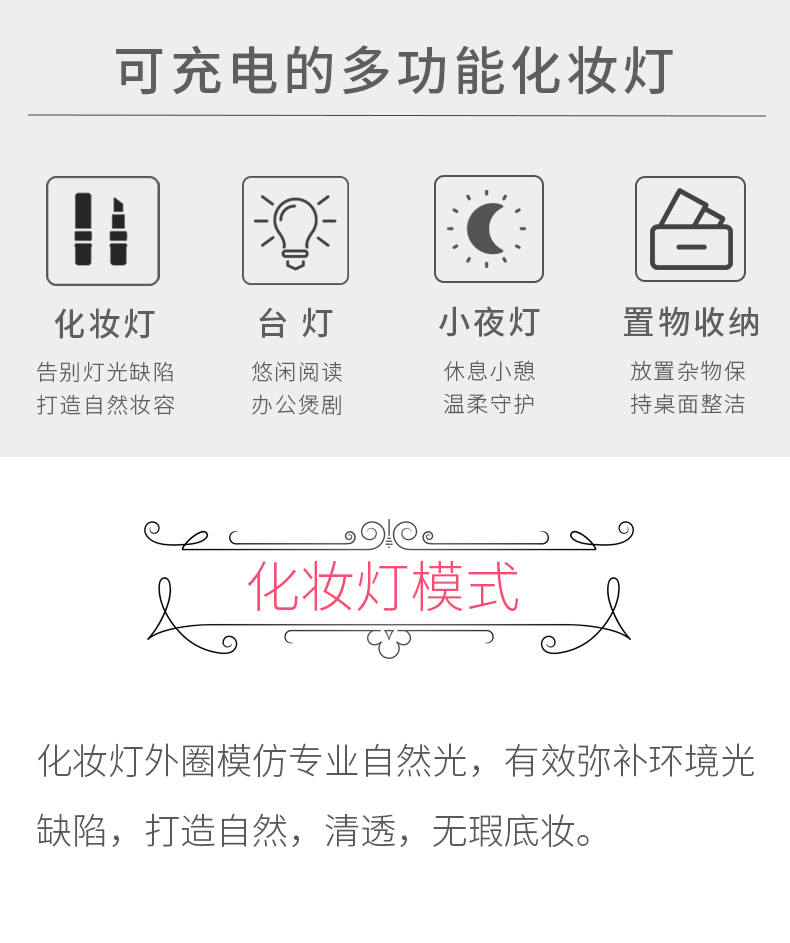 商品名称:西默 LED化妆镜子带灯大号创意公主台灯充电台式桌面梳妆发光粉色 粉红色
