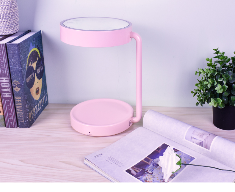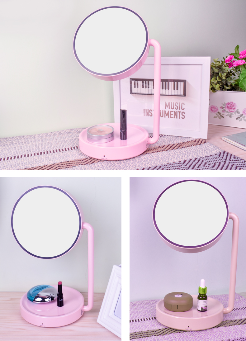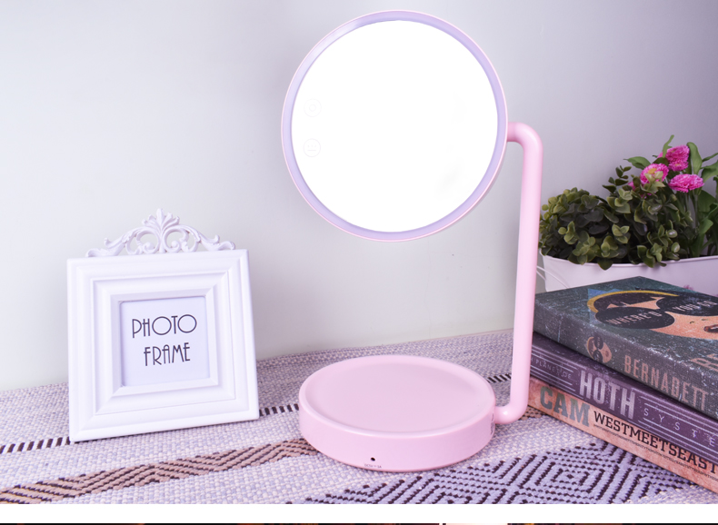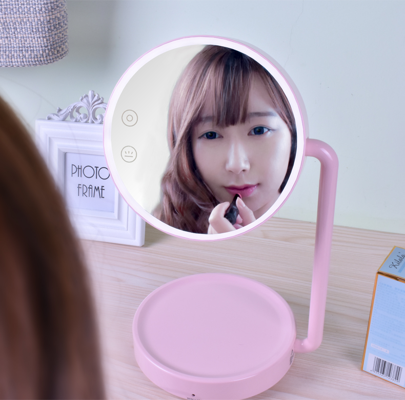 西默 LED化妆镜子带灯大号创意公主台灯充电台式桌面梳妆发光粉色 粉红色