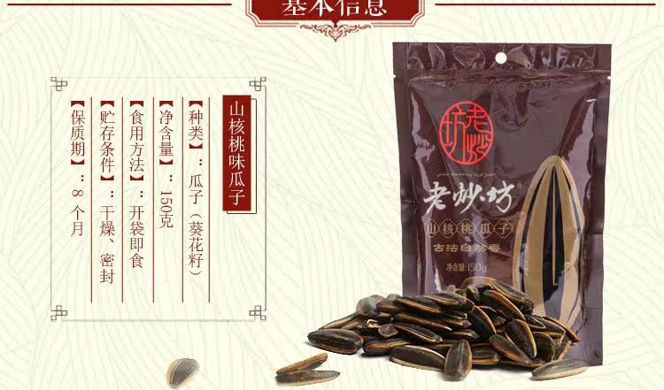 商品名称:老炒坊 150g*2袋葵花子山核桃味瓜子香瓜子坚果零食炒货包邮