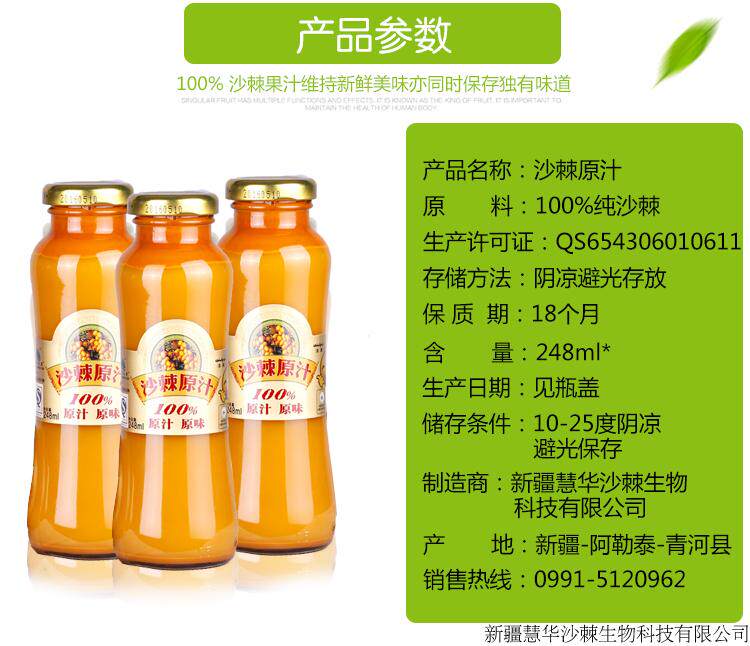 商品名称:新疆青河大果沙棘原汁,零添加248ml*20瓶装