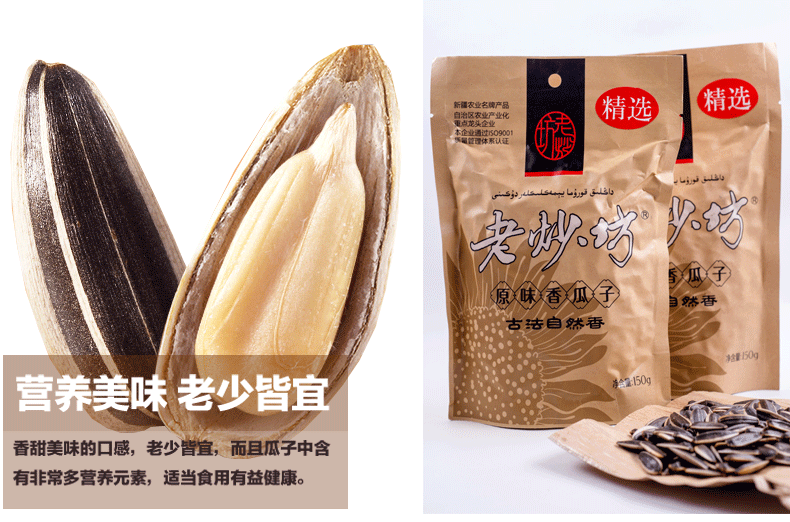 商品名称:老炒坊 150g*2袋葵花子原味瓜子香瓜子坚果零食炒货包邮