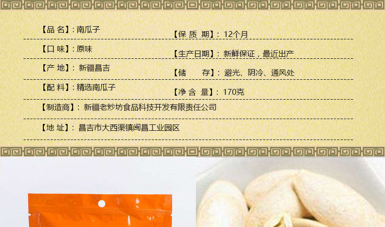 商品名称:老炒坊 170g*3袋原味南瓜子 现炒熟南瓜子坚果炒货包邮