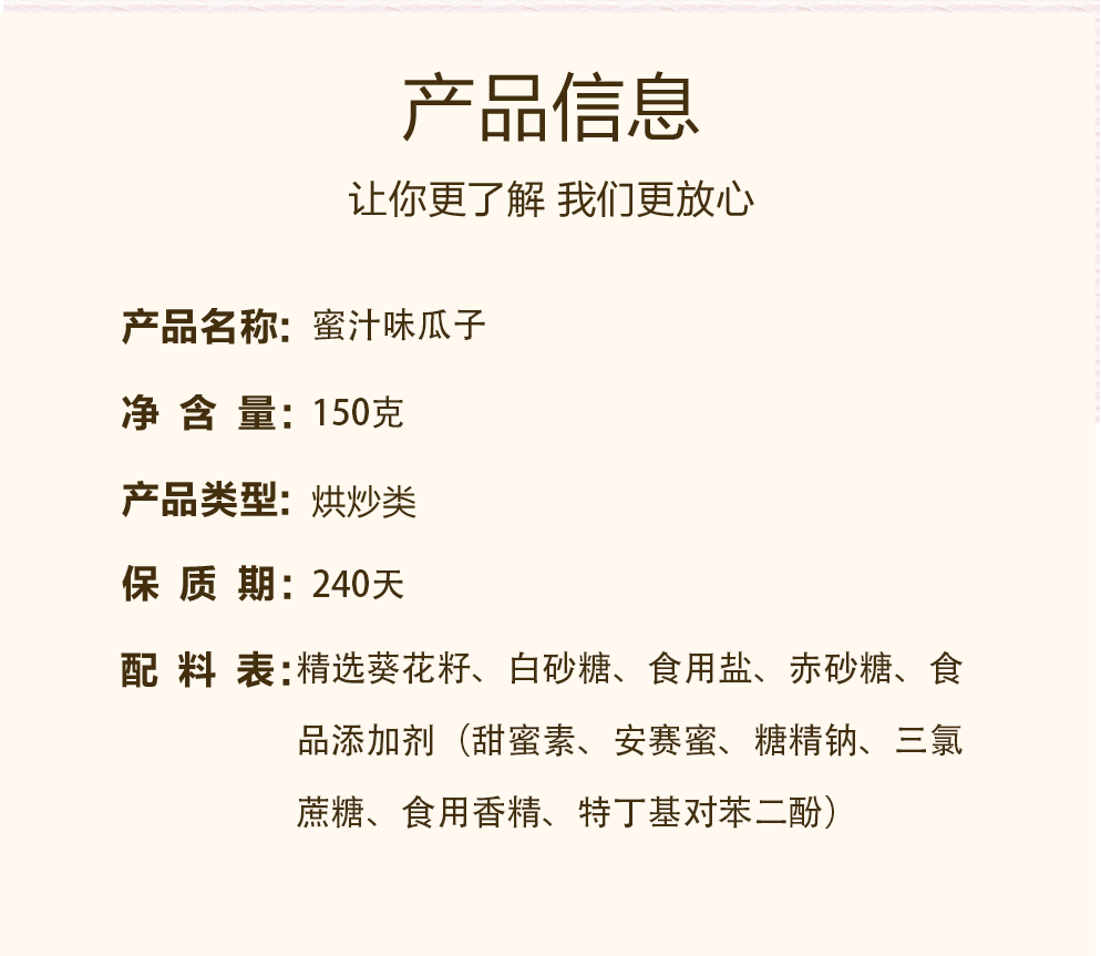 商品名称:老炒坊 150g*2袋大颗粒葵花子蜜汁瓜子香瓜子坚果休闲零食炒货