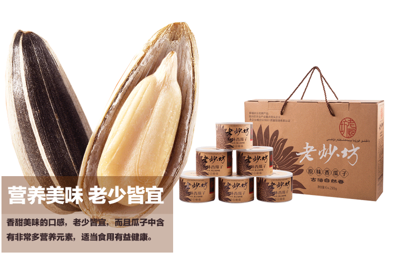 商品名称:老炒坊 218g*6灌装葵花子原味瓜休闲零食子坚果炒货礼盒装包邮