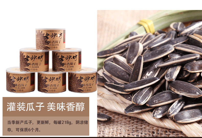 老炒坊 218g*6灌装葵花子原味瓜休闲零食子坚果炒货礼盒装包邮