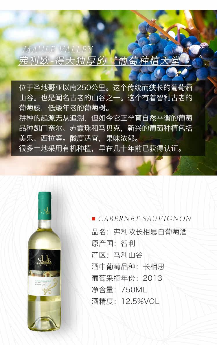 商品名称:智利正品原装进口甜酒 精选弗利欧长相思干白葡萄酒 微甜